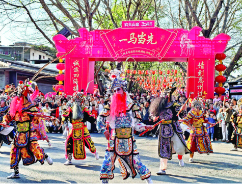 龍門沿線村莊的新春氛圍不乏文體歡歌。大年初一,麻榨鎮(zhèn)中心村文化廣場(chǎng)上鑼鼓喧天、人聲鼎沸,“助力鄉(xiāng)村振興暨鰲溪扶貧助學(xué)慈善會(huì)第十二屆頒獎(jiǎng)活動(dòng)”火熱開展。鏗鏘的鑼鼓聲中,村中青年組成的籃球隊(duì)展開激烈角逐,場(chǎng)外觀眾的吶喊助威聲此起彼伏;拔河比賽更是將氣氛推向高潮,村民們緊握繩索、齊心協(xié)力,在歡聲笑語中凝聚起鄰里情。