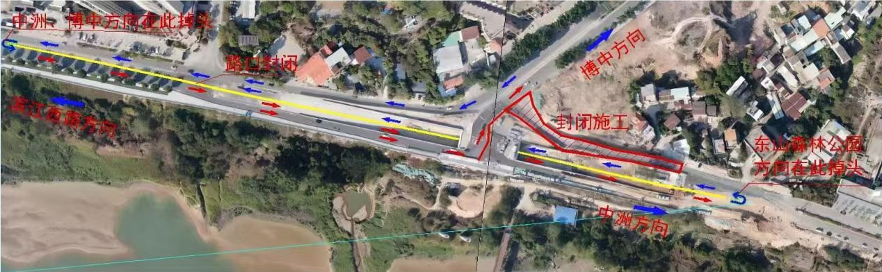 。2)濱江路東山森林公園路口左右幅道路中心線封閉,封閉路段車輛禁止左轉(zhuǎn)、掉頭。