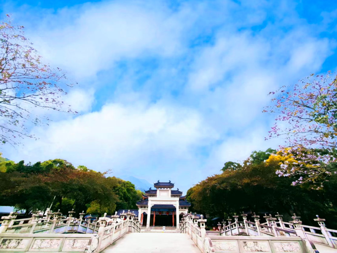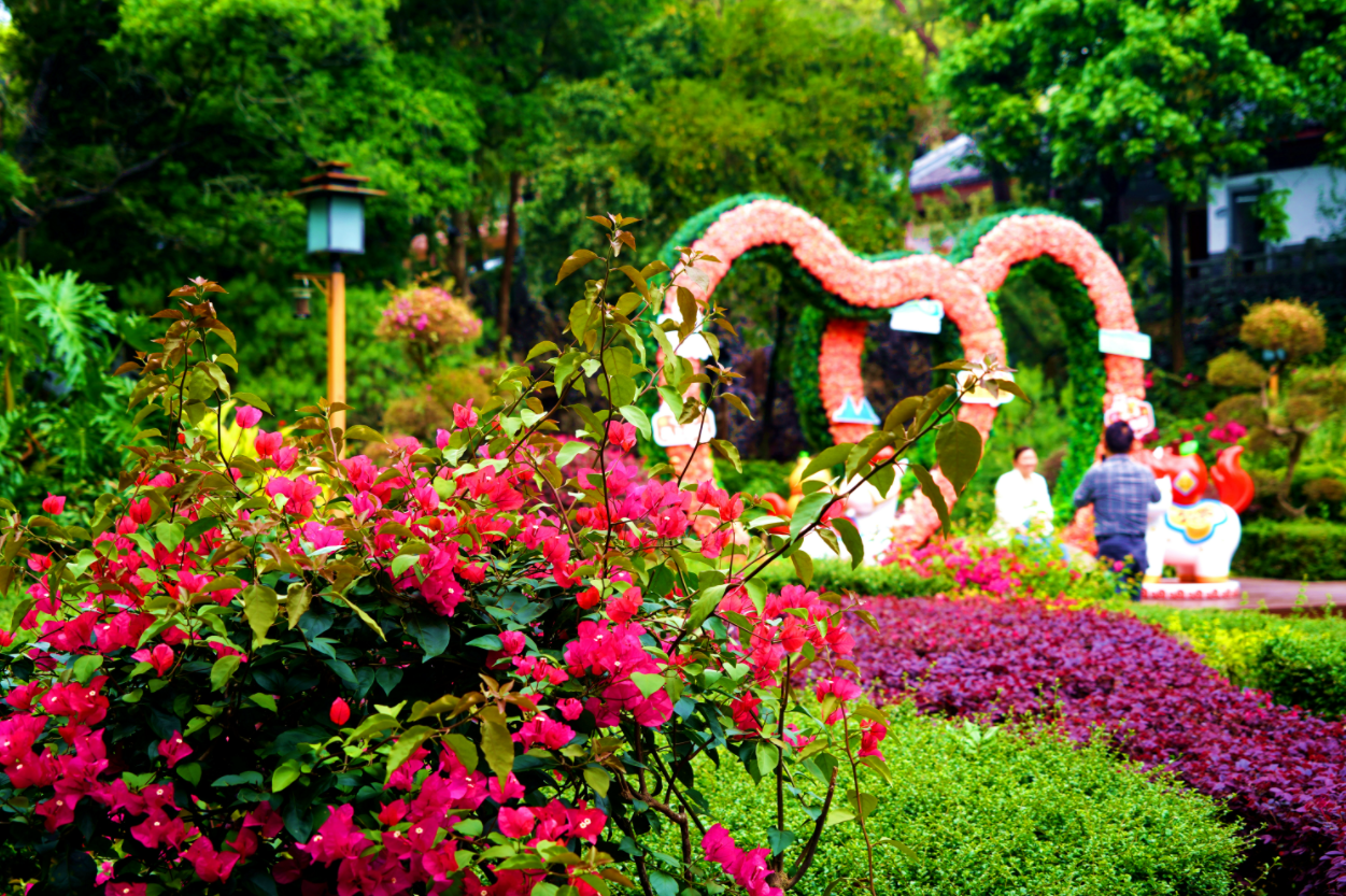 玫紅三角梅、蜜蠟色含笑、橙黃萬壽菊、淡粉紫杜鵑、淺綠禾雀花……各色花卉次第綻放,共同勾勒出羅浮山“一山有四季,十里不同天”的春日盛景。