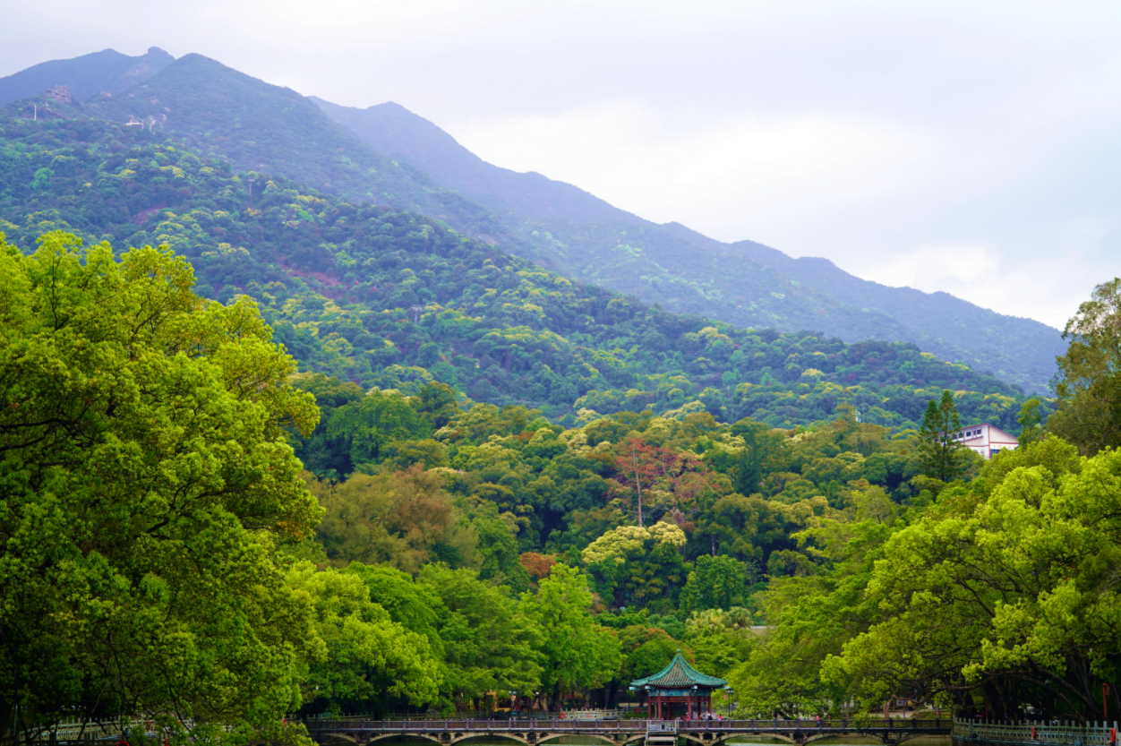 山間原始林木抽芽吐綠,深淺不一的蒼翠鋪滿山巒,造就羅浮山最治愈的天然綠境。