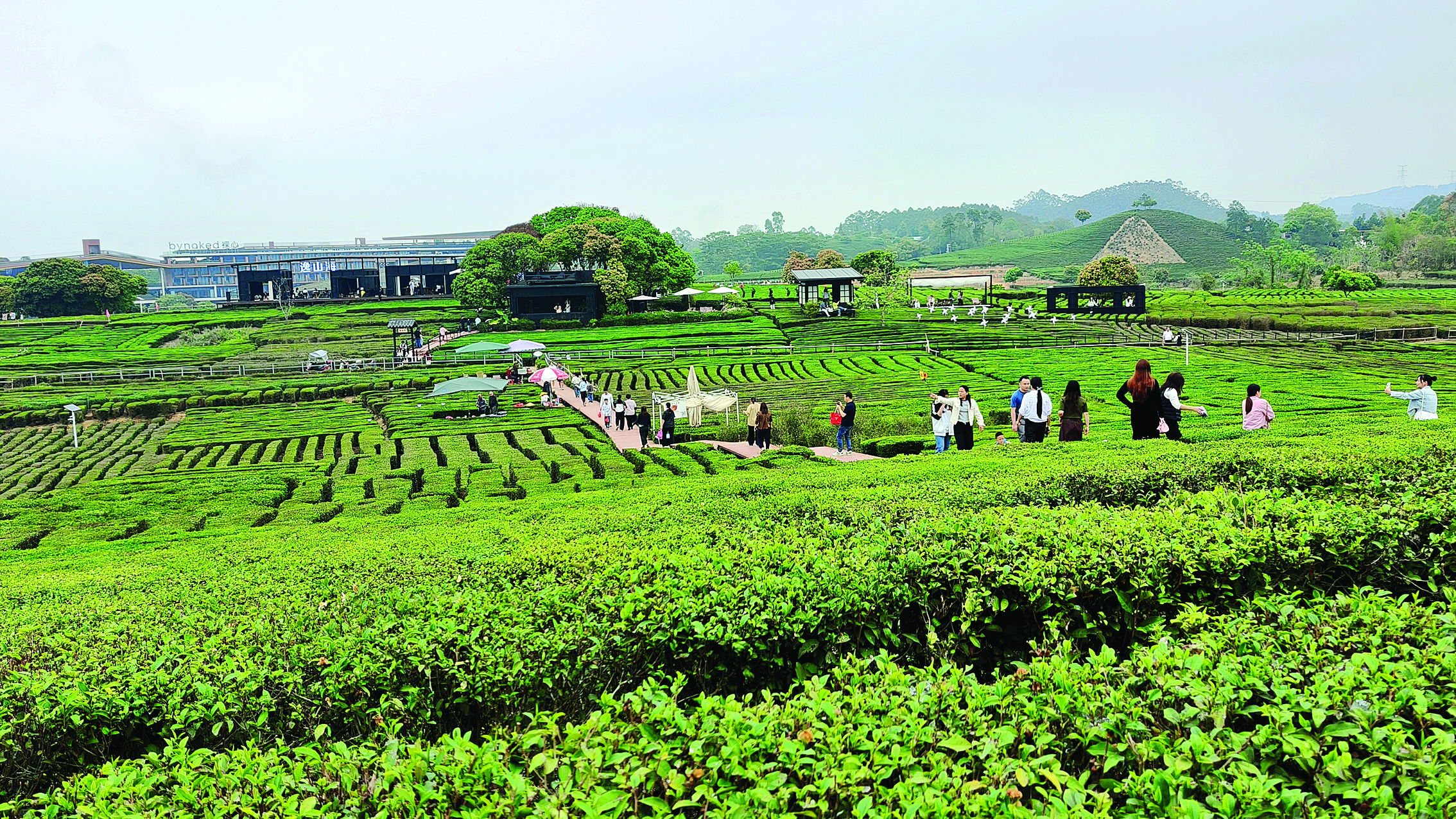 游人在柏塘鎮(zhèn)萬(wàn)畝茶園游玩。 惠州日?qǐng)?bào)記者李燕文 攝
