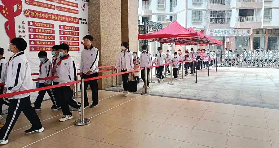 大亞灣區(qū)開(kāi)學(xué)首日,學(xué)生有序進(jìn)入校園。
