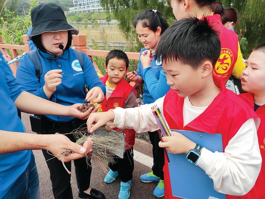 活動開始前,帶隊(duì)老師賀談先帶領(lǐng)成員玩起了“破冰游戲”,增進(jìn)彼此的認(rèn)識。之后,在老師的帶領(lǐng)下,大家沿著海岸線徒步!白限睒湓谑艿酵饨绱碳ぶ笱,就會像怕癢癢一樣抖來抖去,所以它又叫癢癢樹……”走進(jìn)烏頭山綠道,老師熱情地為大家介紹紫薇樹、榕樹、黃槿、芒果樹、木麻黃的特征及習(xí)性!耙郧白哌@條路的時(shí)候只是簡單散步,今天跟著老師一路認(rèn)識了那么多植物,有一種全新的感受。”參加活動的“大朋友”蔣全碧開心地說。