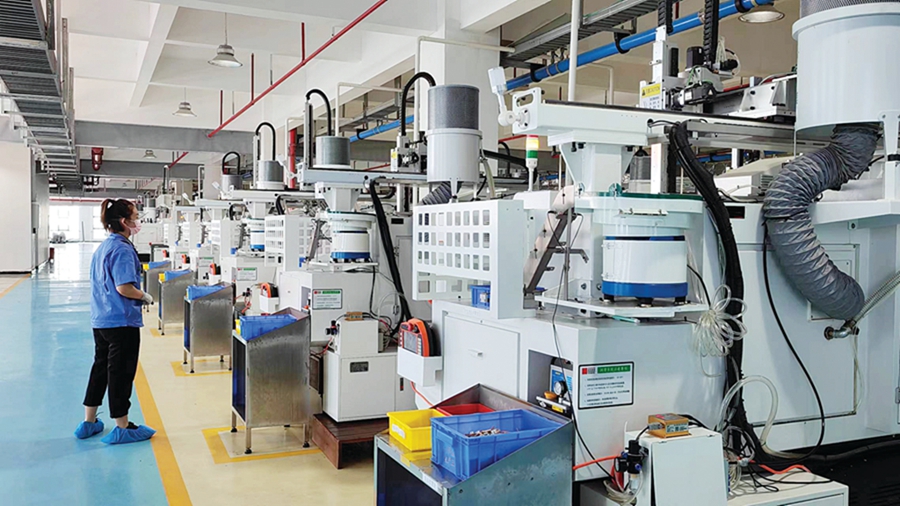 肖輝煌介紹,目前惠州科達利生產車間除了全檢等少部分后期工序需要人工外,產品生產中的各個工序都是采用高精度的自動化設備來完成,生產線自動化程度達40%。較高的自動化水平不僅提高了生產效率,更節(jié)約了人力成本。