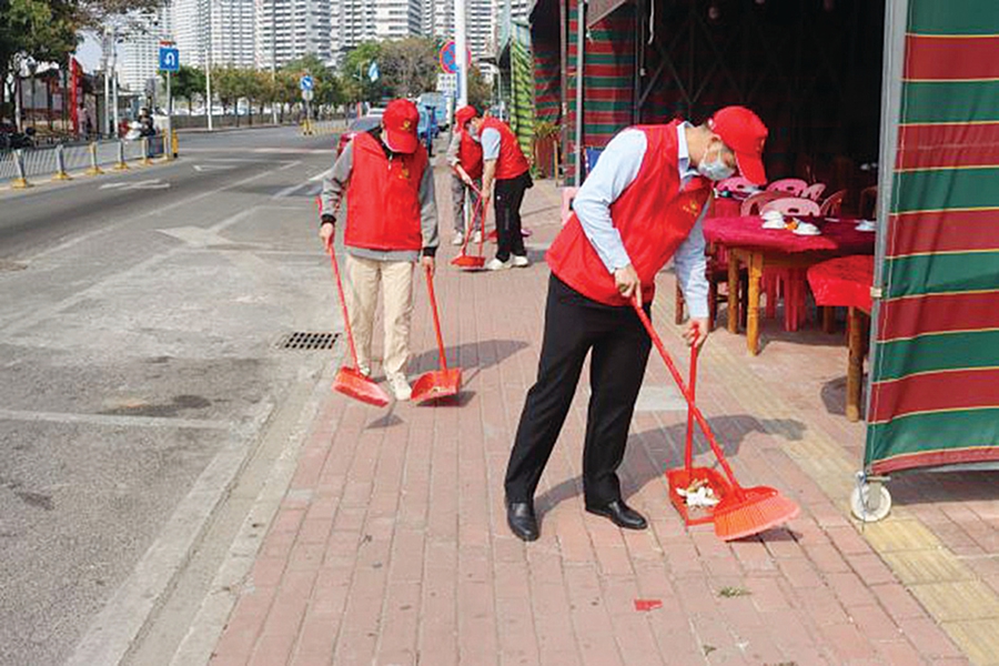 霞涌街道志愿者清掃街道。惠州日報記者匡湘鄂 曾靜妍 攝