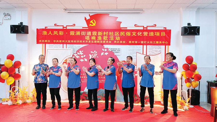 惠州日報(bào)訊 (記者匡湘鄂)日前,一陣陣悠揚(yáng)動人的漁歌從大亞灣霞涌霞新村黨群服務(wù)中心傳出,令人忍不住駐足傾聽,“漁人風(fēng)‘彩’·霞涌街道霞新村社區(qū)民俗文化營造項(xiàng)目”——“唱響漁歌”活動在這里舉行。霞新村愛唱、會唱漁歌的漁家婦女們盛裝出席,把一首首傳唱已久、韻味悠長的漁歌唱給大家聽。