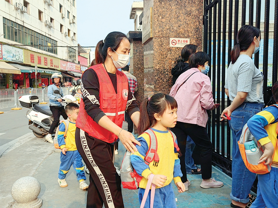 在澳頭心心幼兒園門前,每逢上下學期間總會出現(xiàn)一批志愿者,他們在校門前維持交通秩序,護送孩子從馬路上安全通過。大亞灣“小城大愛”護學志愿服務隊隊長范水帝向記者介紹,2017年9月組織成立該志愿服務隊以來,該隊伍已發(fā)展到兩百多人,先后在6所學校門口設立過常態(tài)化的護學崗!皥猿肿鲋驹阜⻊蘸芏嗄炅耍看螀⒓又驹阜⻊斩继貏e開心。”家長志愿者鄭瑞曦說,“能夠當著孩子的面做公益,做好事,言傳身教引導孩子樹立正確的價值觀,很有意義。”文/圖 惠州日報記者黃旭新