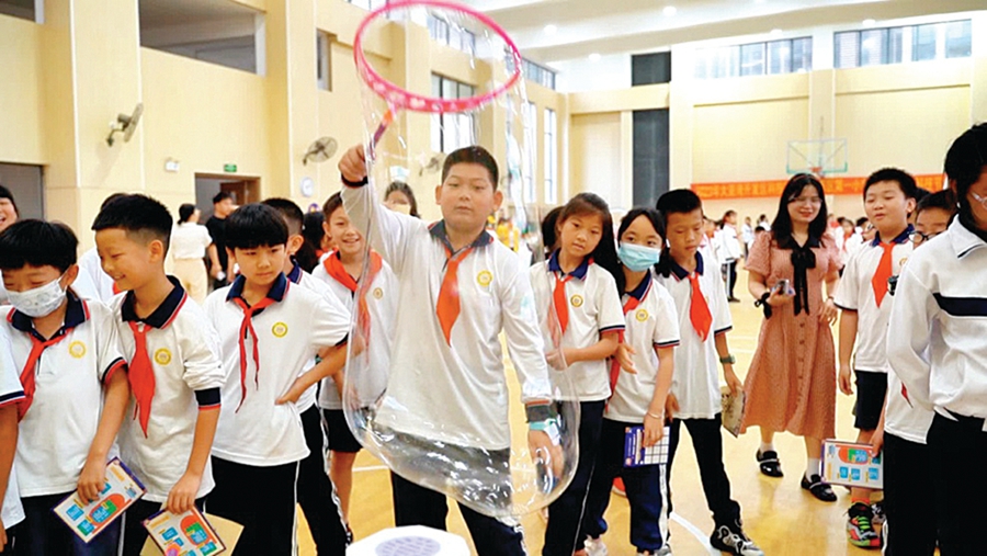 惠州日?qǐng)?bào)訊 (記者匡湘鄂 通訊員杜雯)給火箭添加水,固定在發(fā)射架上,調(diào)試好發(fā)射角度,并用打氣筒給火箭充好氣,“砰”的一聲,水火箭騰空飛射,在空中劃出美麗的弧線(xiàn)……日前,2023年大亞灣開(kāi)發(fā)區(qū)科技活動(dòng)周暨西區(qū)第一小學(xué)科創(chuàng)園分校科技節(jié)活動(dòng)正式啟動(dòng),豐富多彩的科技項(xiàng)目讓學(xué)生們大開(kāi)眼界。