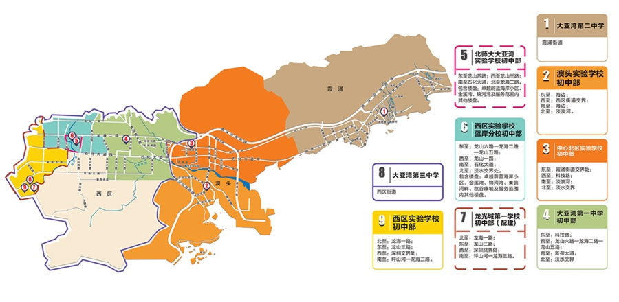 2023年大亞灣開發(fā)區(qū)公辦初中招生服務范圍示意圖。 大亞灣開發(fā)區(qū)管委會教育文化衛(wèi)生健康局 供圖