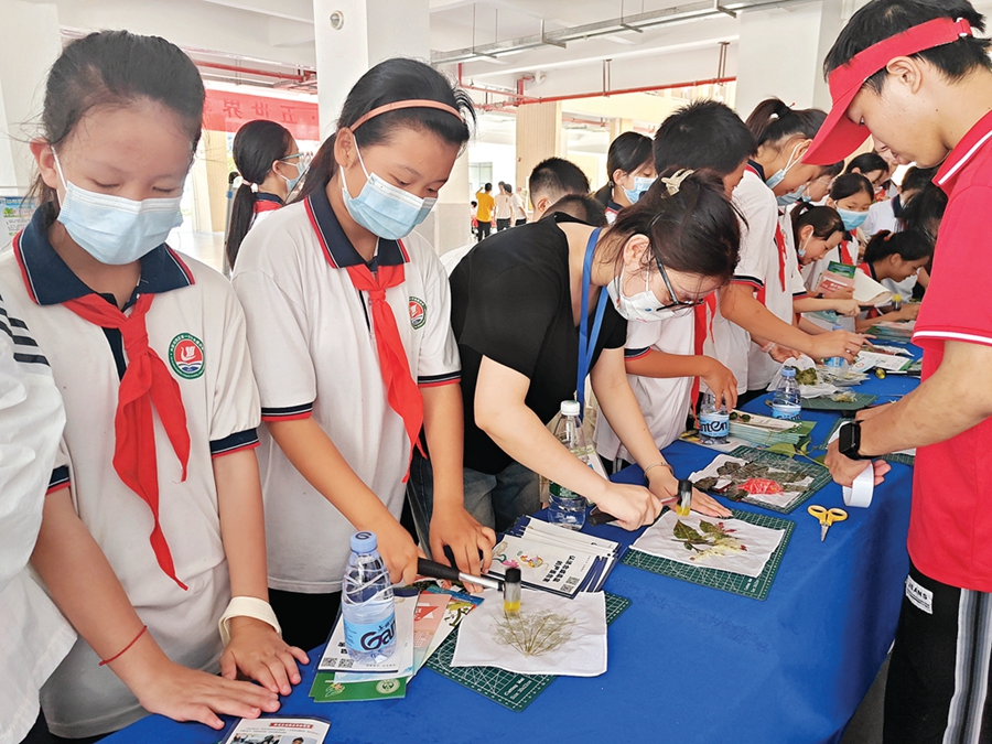 活動(dòng)現(xiàn)場(chǎng)設(shè)置了標(biāo)本區(qū)、作品區(qū)、展板區(qū)和游戲區(qū)!斑@兩株是我們大亞灣本土的紅樹苗,分別是紅海欖和秋茄……”工作人員通過(guò)陳列環(huán)保主題展板,擺放環(huán)?破招麄髻Y料、貝殼標(biāo)本、紅樹林幼苗以及展示小朋友的環(huán)保手工作品,展示了近年來(lái)大亞灣生態(tài)文明保護(hù)成果,引導(dǎo)小朋友增強(qiáng)環(huán)境保護(hù)意識(shí)!拔铱吹娇掌孔訒(huì)撿起來(lái),然后放進(jìn)有‘可回收’標(biāo)志的垃圾桶里。”“回去后我會(huì)讓媽媽用洗菜的水澆花,循環(huán)利用水資源!”活動(dòng)結(jié)束后,小朋友們紛紛表示以后要爭(zhēng)當(dāng)環(huán)保小衛(wèi)士,為大亞灣的生態(tài)文明建設(shè)貢獻(xiàn)力量。