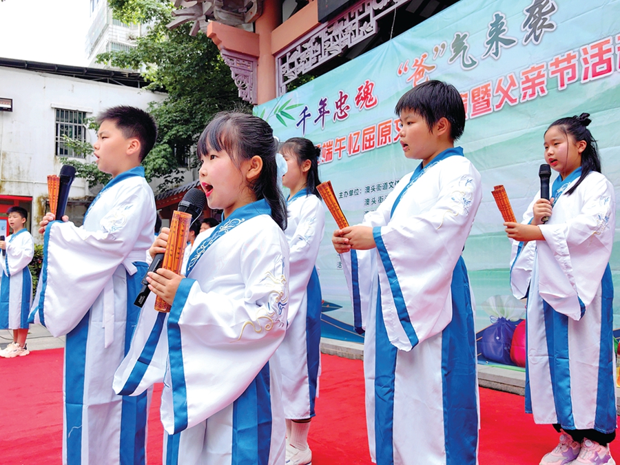 孩子們在吟誦屈原名篇《離騷》;葜萑請笥浾咴o妍 通訊員王文婷 攝