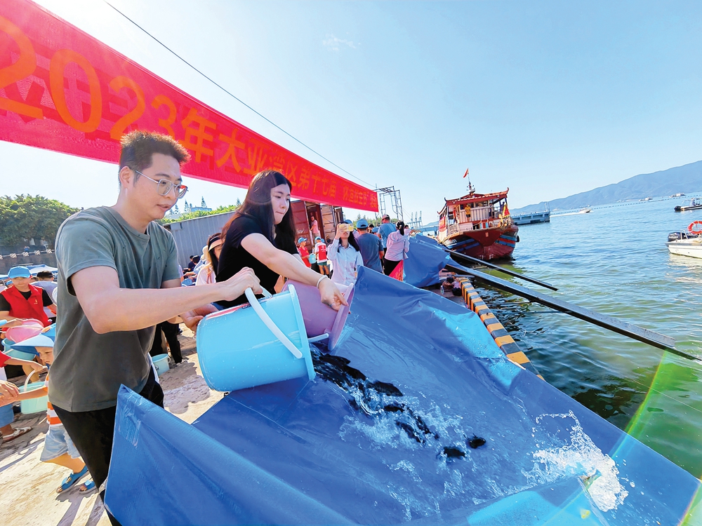 惠州日?qǐng)?bào)訊 (記者匡湘鄂 通訊員陳志敏)日前,大亞灣區(qū)第十七屆“休漁放生節(jié)”增殖放流活動(dòng)在中海碼頭舉行。大亞灣開(kāi)發(fā)區(qū)社會(huì)事務(wù)管理局、省海洋漁業(yè)試驗(yàn)中心、大亞灣水產(chǎn)資源保護(hù)區(qū)管理處、區(qū)屬有關(guān)單位干部職工以及漁村群眾、志愿者、學(xué)生代表等共100多人參加活動(dòng)。本次增殖放流活動(dòng)共投放斜帶石斑(青斑)、斑節(jié)對(duì)蝦等魚(yú)蝦苗433萬(wàn)尾。