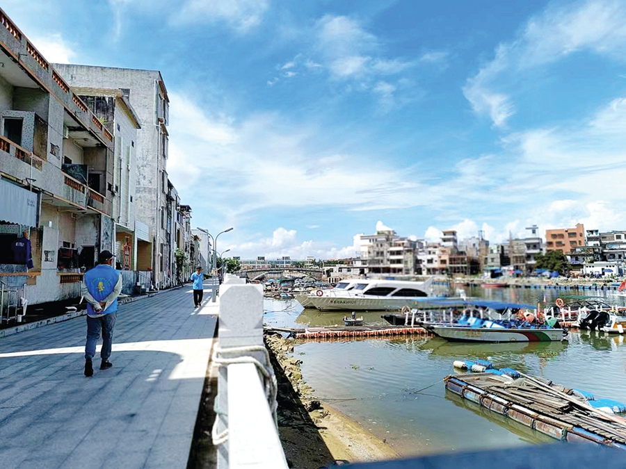 站在青龍橋往下看,河道兩岸修建有人行棧道,河床寬闊,河水清淺,不時(shí)有白鷺從水面掠過。數(shù)百年來(lái),青龍河從北向南,流經(jīng)上角村園嶺崗、曲樓、上西村,以及義聯(lián)沙排和下蓮塘后,在距離霞涌港口600米左右處與下沙河匯合,然后流入霞涌漁港、匯入大海。