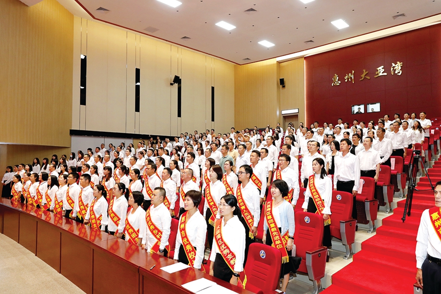 大亞灣開發(fā)區(qū)召開慶祝教師節(jié)大會表彰一批先進單位和先進個人。 惠州日報記者匡湘鄂 攝