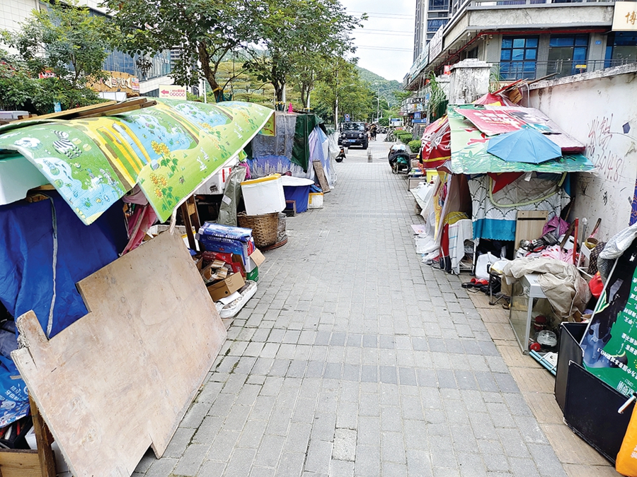 新龍東路整治前,廢品占據(jù)人行道;葜萑請笥浾呖锵娑 通訊員劉雄威 陳思昊 攝