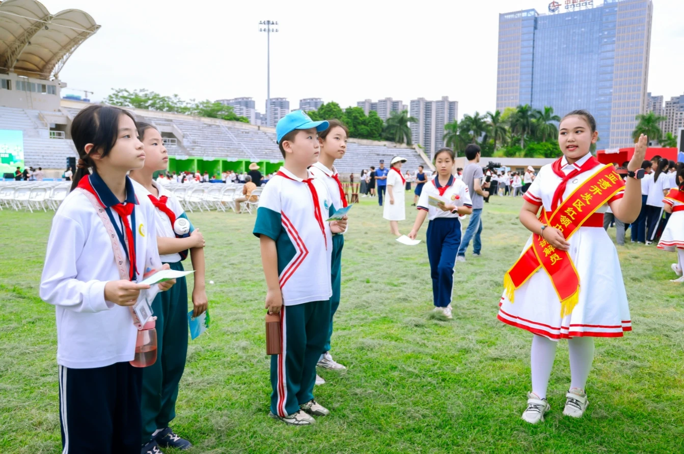 活動中還舉辦了惠州市第三屆紅領(lǐng)巾校外嘉年華。嘉年華以“紅領(lǐng)巾獎?wù)隆睜幷滦问介_展,現(xiàn)場設(shè)置了活動留影區(qū)、知識問答區(qū)、社會實踐區(qū)等共14個活動集章攤位,少先隊員現(xiàn)場完成“紅領(lǐng)巾講解員”“綠美小衛(wèi)士”“科學探索”“自護安全”4個區(qū)域的紅領(lǐng)巾特色章打卡活動,即可獲得區(qū)級實體特色章4枚;現(xiàn)場集齊4枚特色章,即可獲得市級“惠州綠美實踐小先鋒”特色章一枚。