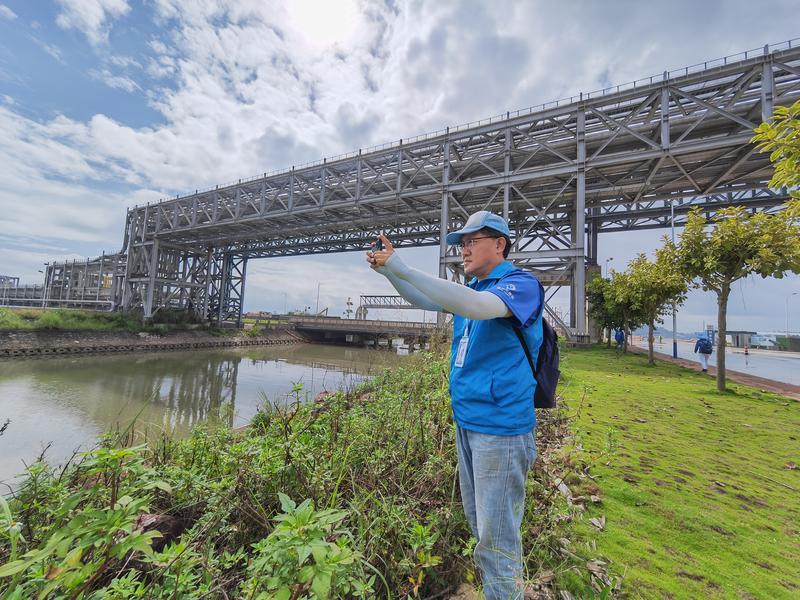 沿著巖前河石化區(qū)段邊的濱海四路一路往南,滿眼皆是風(fēng)景,有巖前河的碧波蕩漾和河邊青草茵茵、綠樹映照,還有高大的油罐、縱橫交錯(cuò)的管線組成的工業(yè)美景,讓人不由得心生豪情與感動(dòng)。