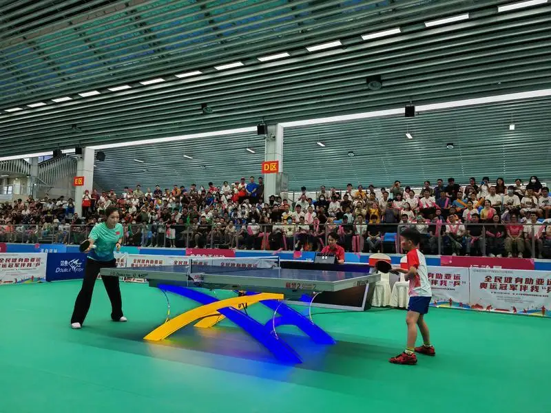 綜合館開館當天,乒乓球世界冠軍劉詩雯與大亞灣球迷互動。 惠州日報記者匡湘鄂 攝