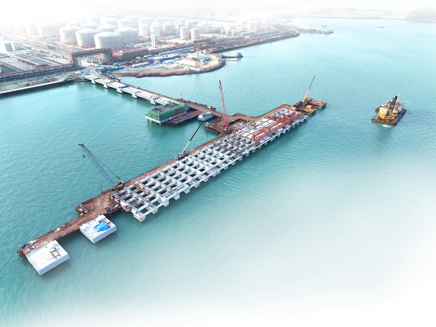 據(jù)悉,項目分兩個階段建設(shè),包括水工工程和安裝工程。安裝工程包含碼頭的工藝及設(shè)備、輔建區(qū)生產(chǎn)輔助建筑物及結(jié)構(gòu)等。“為了順利完成目標,我們倒排時序,增加人力,把工作勁頭調(diào)到最大,分秒必爭搶工期!表椖控撠熑巳A學輝說,“到今年底,5萬噸級液化烴碼頭項目水工施工工程將完成90%,屆時將完成碼頭總體工程63%!