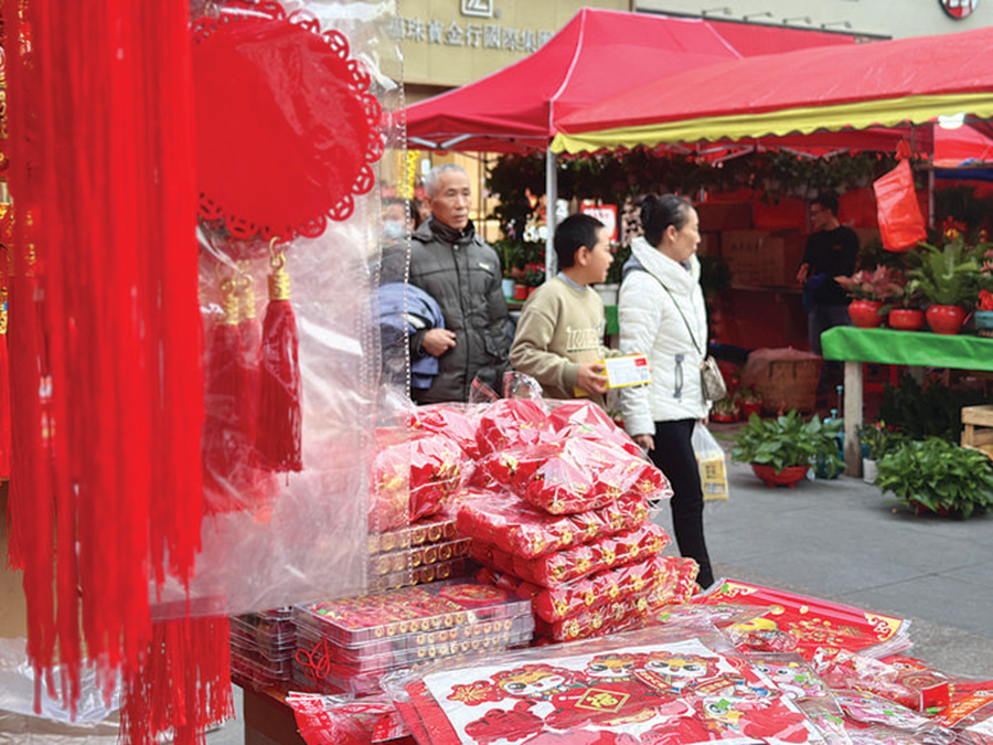 絨布燙金的春聯(lián)、福字,龍年獻瑞的中國結,品種豐富的盆栽……在藍灣廣場門前的新春集市,“紅紅火火”的商品吸引了不少人流!斑@里的年花很好看,選擇也多,我打算挑兩盆回去。”市民張女士說。據了解,該集市從1月25日持續(xù)至2月9日(除夕)。