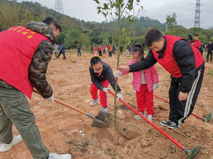 黃花風(fēng)鈴木、桂花樹、小葉榕、土沉香、紅葉石楠……春風(fēng)習(xí)習(xí),在全區(qū)各村(社區(qū))的“黨建林”“主題林”中,新種的各色花果樹苗迎風(fēng)舒展著枝葉,正成為一處處新的風(fēng)景。