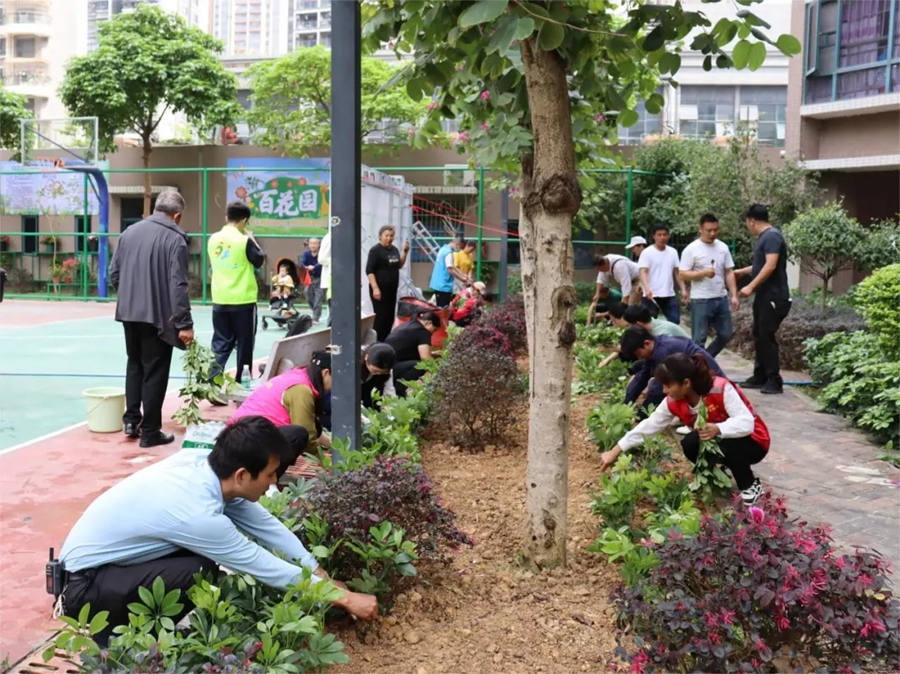 居民種樹捐花 小區(qū)百花齊放