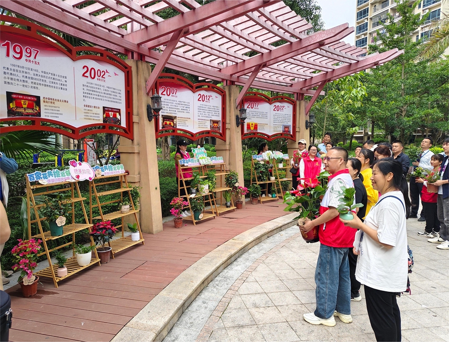 聯(lián)合共建16處暖“新”微站,為快遞小哥提供24小時(shí)支持性服務(wù);聯(lián)合開展“綠美大亞灣”攻堅(jiān)行動(dòng),以“百家花共繪近鄰景”為理念,黨員帶動(dòng)居民捐贈(zèng)綠植花卉,打造了百花齊放、生機(jī)勃勃的百花園;聯(lián)合推動(dòng)成立新荷社區(qū)基金,開展公益徒步活動(dòng)……在西區(qū)街道新荷社區(qū),社區(qū)黨支部與科創(chuàng)集團(tuán)黨支部回顧了近半年結(jié)對(duì)共建的工作成果。