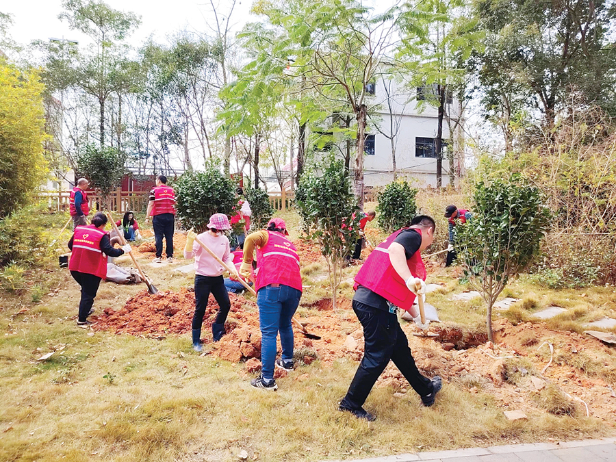 將植綠護綠興綠行動與“黨群活動日”深度融合,運用“干部先行、黨員帶頭、群眾跟進、重點突破”工作機制,發(fā)動社會各界力量掀起“我為家鄉(xiāng)種棵樹、共建綠美鄉(xiāng)村”熱潮;成立“護綠先鋒隊”,定期開展?jié)菜⑹┓实裙莛B(yǎng)工作……西區(qū)街道積極探索“黨建+聯(lián)建+綠化”模式,堅持黨建引領(lǐng)、黨員帶頭,營造濃厚的植綠增綠氛圍。