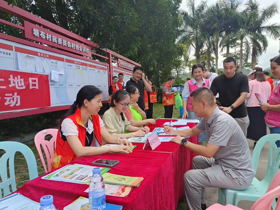 在西區(qū)塘布村委會(huì)廣場(chǎng),政策宣傳區(qū)、政策咨詢臺(tái)前圍滿了熱情的村民。工作人員向村民宣傳自然資源有關(guān)政策,派發(fā)自然資源相關(guān)宣傳資料,并耐心解答群眾關(guān)心問題,進(jìn)一步提高村民自然資源保護(hù)意識(shí),推動(dòng)形成“主動(dòng)保護(hù)自然資源”的良好氛圍。
