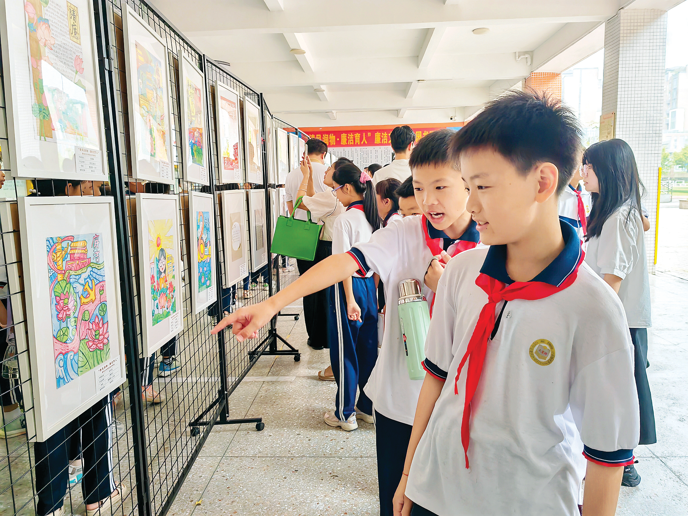 惠州日報訊 (記者匡湘鄂 通訊員邱秋菊)清風徐徐揚正氣,廉潔校園育桃李。日前,大亞灣開發(fā)區(qū)2024年“清風潤物 廉潔育人”廉潔文化進校園書畫展頒獎儀式在澳頭第一小學舉行,對廉潔文化主題書畫大賽評選出的109件優(yōu)秀作品進行頒獎。來自全區(qū)各中小學校的師生代表一同觀看優(yōu)秀作品展,感受書畫的獨特魅力,領(lǐng)略漢字的博大精深和繪畫的多彩藝術(shù),潛移默化接受廉潔文化的熏陶。