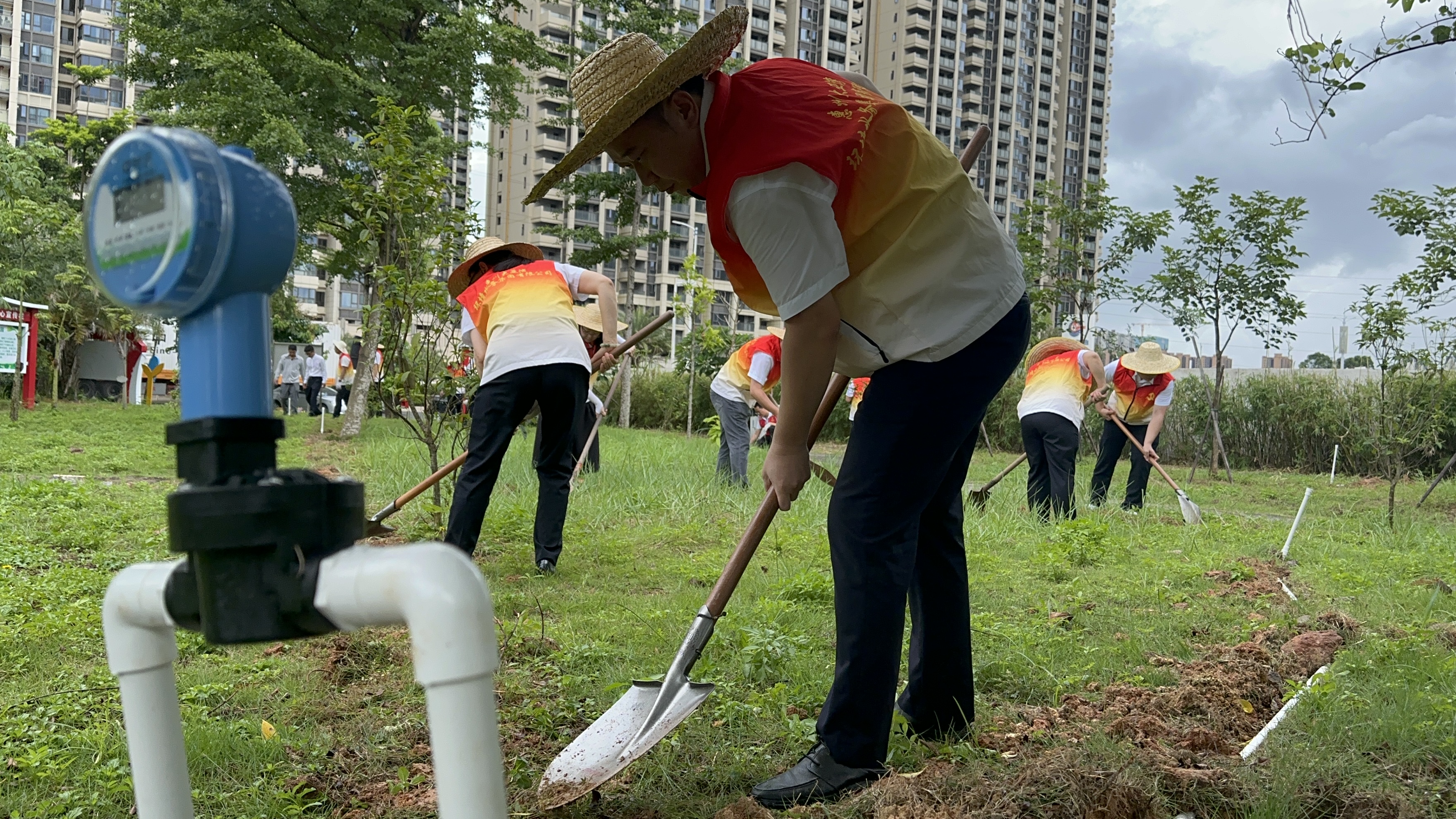 近日,大亞灣環(huán)境水務(wù)集團(tuán)黨總支部聯(lián)合西區(qū)新惠社區(qū)黨支部舉辦“黨建引領(lǐng)齊共建 凝心聚‘綠’促發(fā)展”黨員志愿服務(wù)活動(dòng),共同為公園配齊澆水設(shè)施?辈焖芫路、繪制施工方案、破路開挖接通地下水管……經(jīng)過(guò)多日施工,新惠社區(qū)石化大道西社區(qū)公園的“自動(dòng)噴灌系統(tǒng)”安裝工作迎來(lái)了最后一步。當(dāng)天下午,來(lái)自大亞灣環(huán)境水務(wù)集團(tuán)的黨員志愿者,與社區(qū)黨員干部一同為地下管道的地面進(jìn)行回填,并安裝噴水口,一個(gè)個(gè)噴頭矗立在苗木、草坪間,噴灑的水霧均勻散落在枝頭、草地間……“與過(guò)去人工澆水相比,噴灌技術(shù)不僅起到節(jié)水省力效果,還能避免水直接沖刷葉片,更有利于維護(hù)植物景觀效果!贝髞啚抄h(huán)境水務(wù)集團(tuán)相關(guān)負(fù)責(zé)人介紹,此次為社區(qū)安裝的“自動(dòng)噴灌系統(tǒng)”共有19個(gè)噴水口,能夠根據(jù)使用者需求調(diào)整噴淋時(shí)間和澆水量。