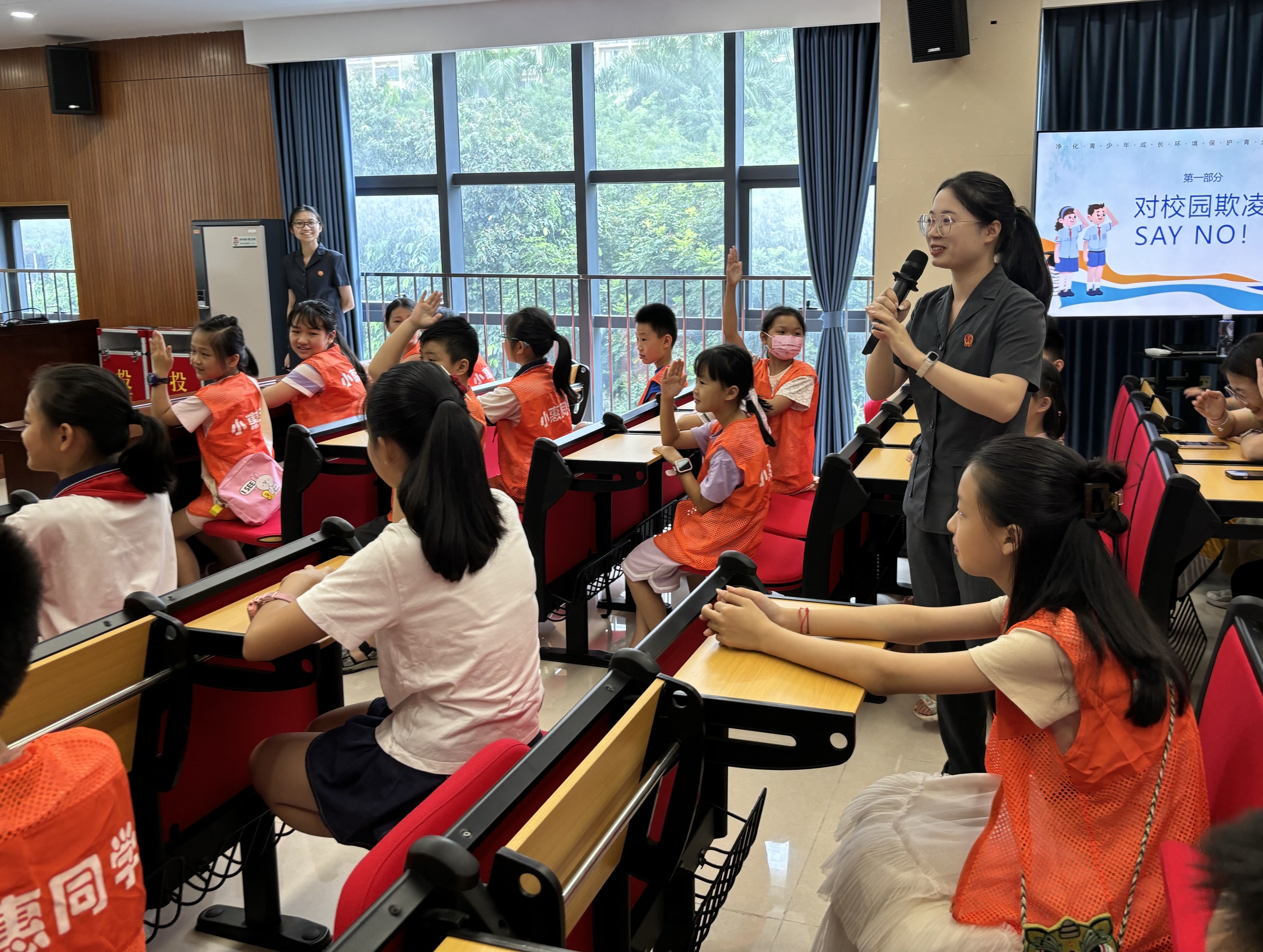 開(kāi)學(xué)在即,大亞灣開(kāi)發(fā)區(qū)人民法院干警為同學(xué)們上了一堂別開(kāi)生面的法治教育課。干警們通過(guò)播放普法動(dòng)畫(huà)短片激發(fā)了大家對(duì)學(xué)習(xí)法律知識(shí)的熱情,并圍繞校園欺凌、性侵犯的主要特點(diǎn)、表現(xiàn)形式進(jìn)行詳細(xì)講解,指導(dǎo)同學(xué)們?cè)谟龅叫@霸凌、性侵犯時(shí)應(yīng)如何正確應(yīng)對(duì)。問(wèn)答環(huán)節(jié)上,同學(xué)們各抒己見(jiàn),大膽表達(dá)看法和疑惑,積極互動(dòng),課堂氛圍十分活躍。