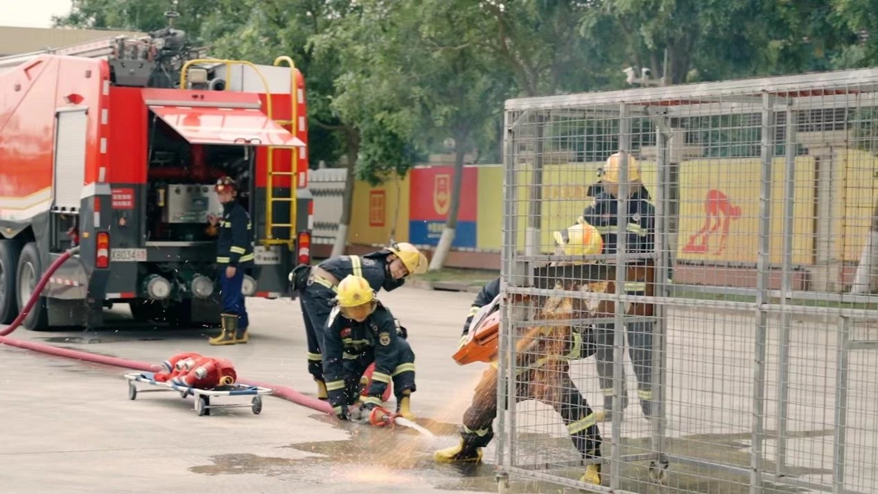活動(dòng)在一場激情澎湃的消防員風(fēng)采展示活動(dòng)中拉開序幕。只見消防員們身手矯健,迅速穿戴好厚重的防護(hù)裝備,進(jìn)行了攀登掛鉤梯、繩索攀爬速降、鋪設(shè)水路等專業(yè)技能展示,在水與火的戰(zhàn)場,用自己的青春與熱血守護(hù)著城市的安寧。他們矯健的身姿、專業(yè)的技能,無不彰顯著“火焰藍(lán)”的英勇與擔(dān)當(dāng)。這一刻,女生們眼中的敬佩之情油然而生,熱烈的掌聲經(jīng)久不息。