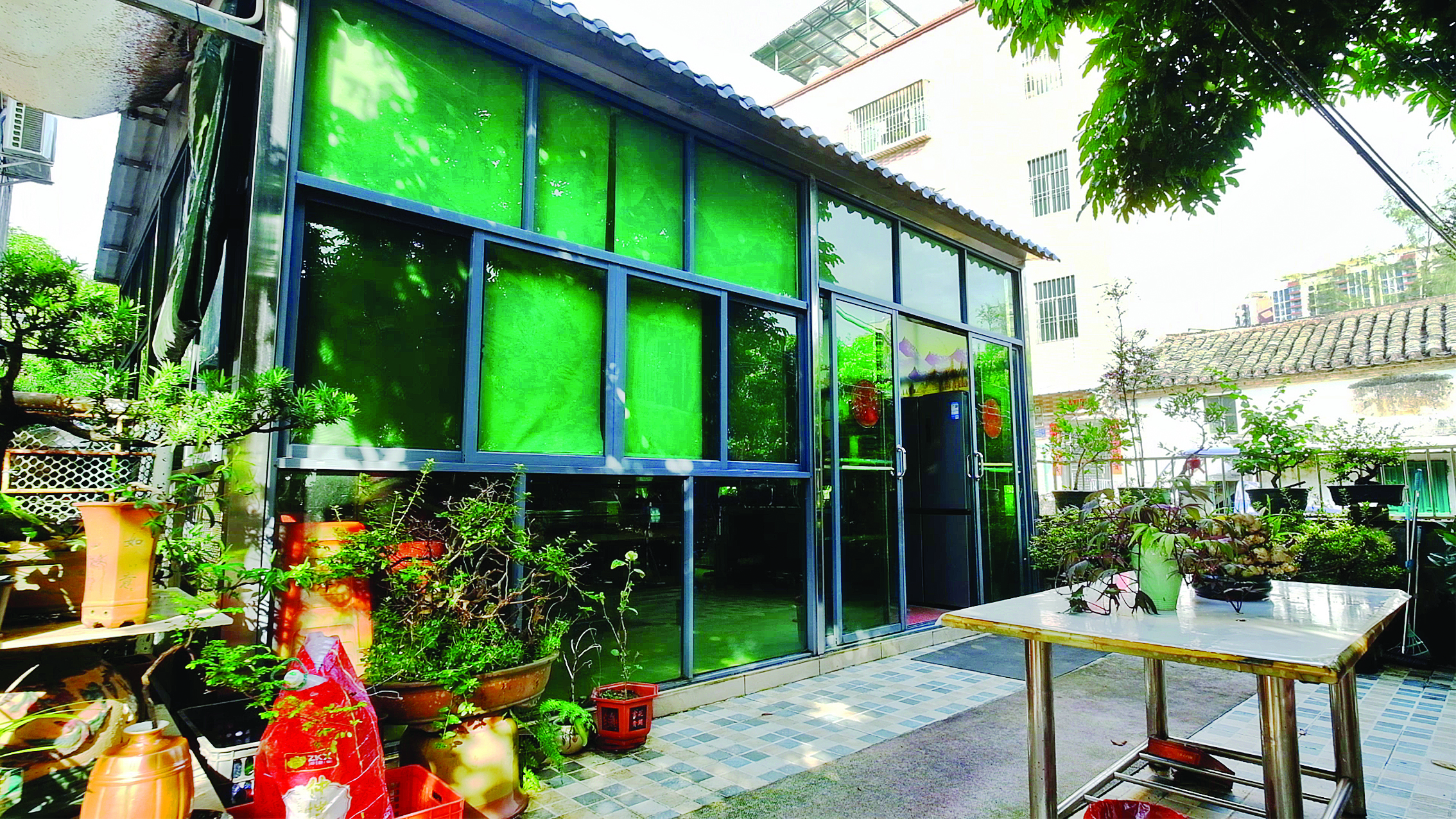 美麗庭院內盆景錯落有致。