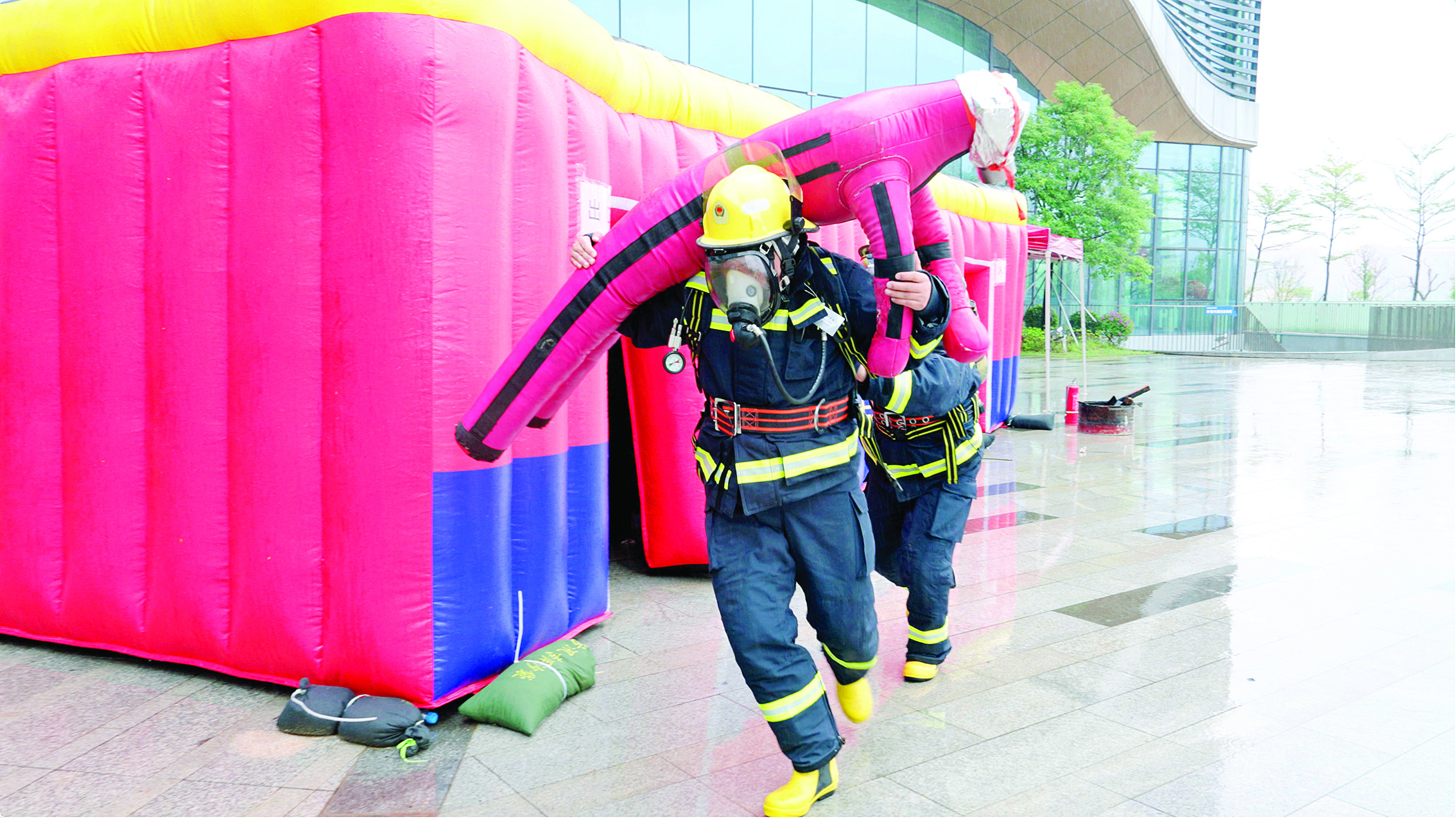 參賽人員進(jìn)行消防實(shí)操比武。惠州日?qǐng)?bào)記者曾靜妍 通訊員唐佳楠 攝