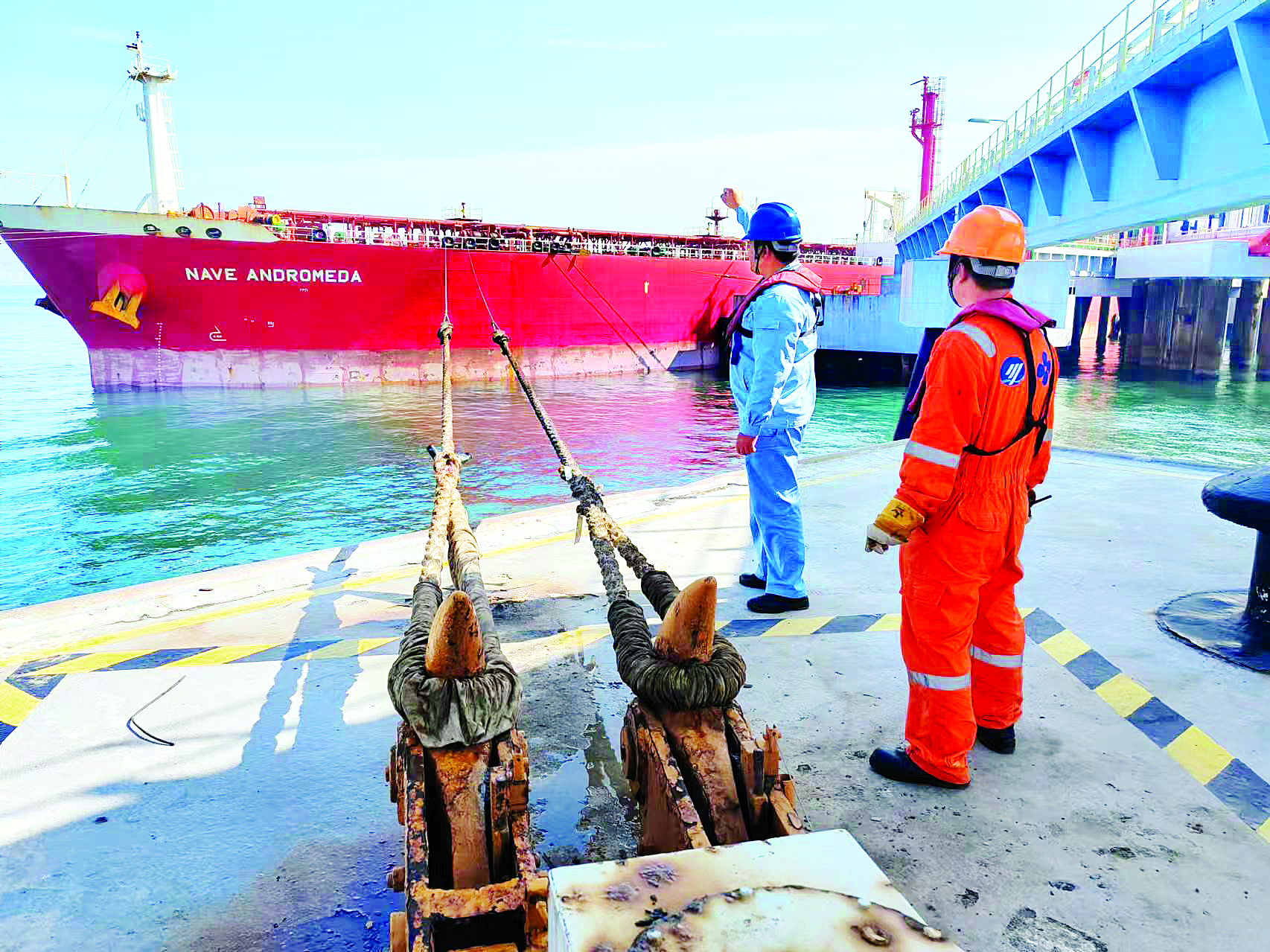 “仙女座”油輪靠泊惠州市大亞灣華德公司馬鞭洲1#泊位。 惠州日報記者黃旭新 通訊員何望 攝