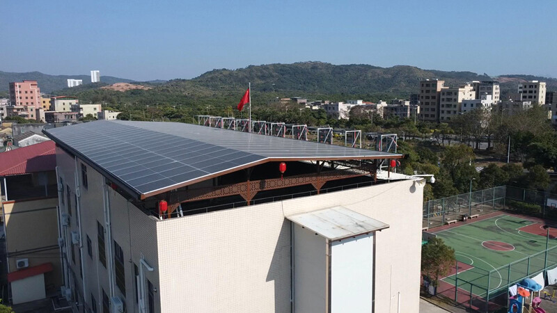 大亞灣霞涌上角村委會(huì)小披檐陽(yáng)光棚光伏屋頂格外引人注目。