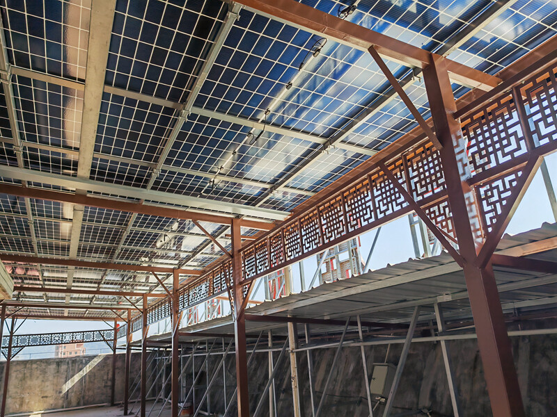 小披檐陽(yáng)光棚光伏屋頂內(nèi)部。