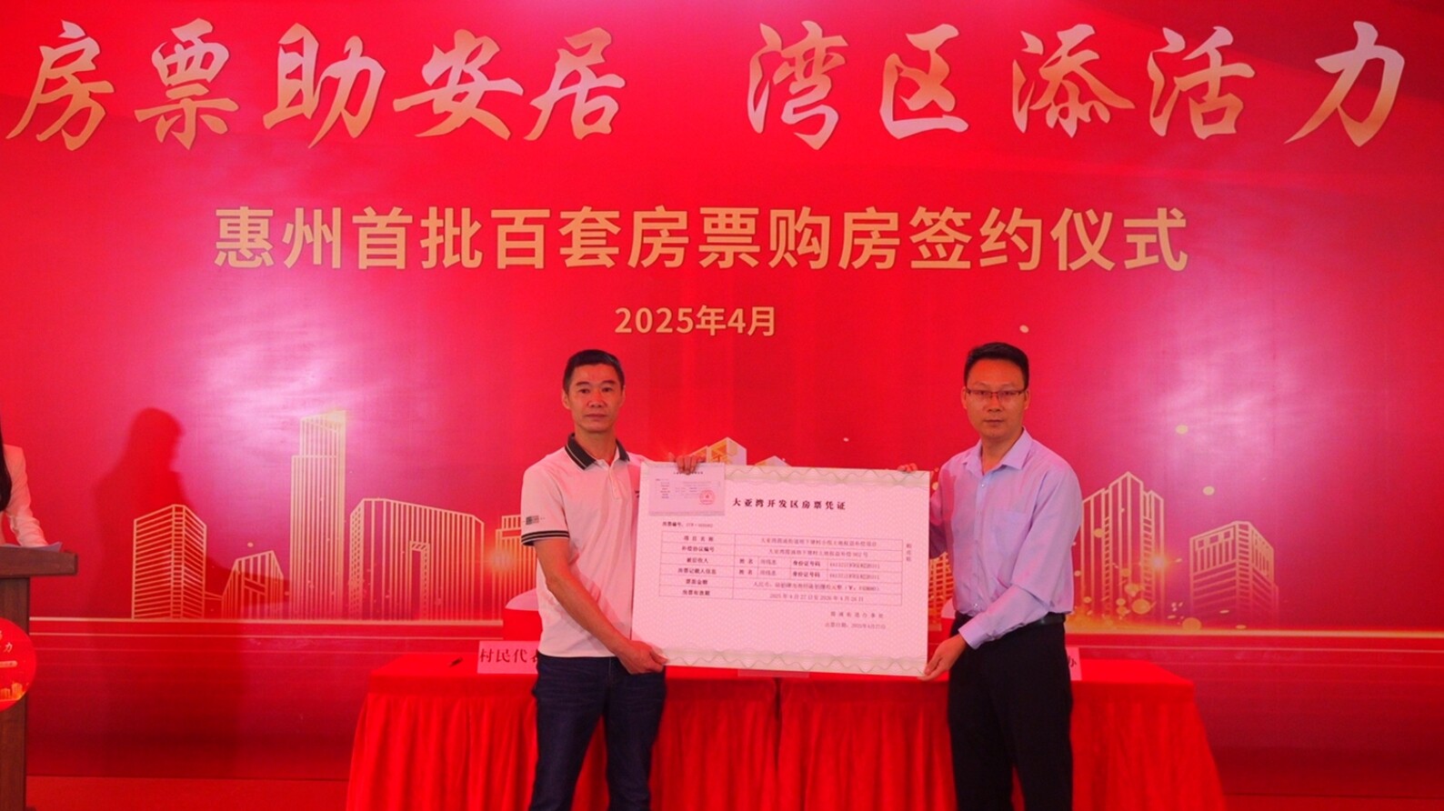 4月27日上午,“房票助安居 灣區(qū)添活力”惠州首批百套房票購房簽約儀式在大亞灣聚泰華庭小區(qū)舉行。霞涌街道壢下社區(qū)壢下塘村民小組村民成為大亞灣房票安置政策的首批受益人。該村民小組獲得116套房票,村民憑房票可在聚泰華庭小區(qū)選購新房。此次發(fā)放的首批百套房票通過“房票安置”方式,解決了該村民小組歷史征地遺留問題,切實保障了村民補(bǔ)償權(quán)益。