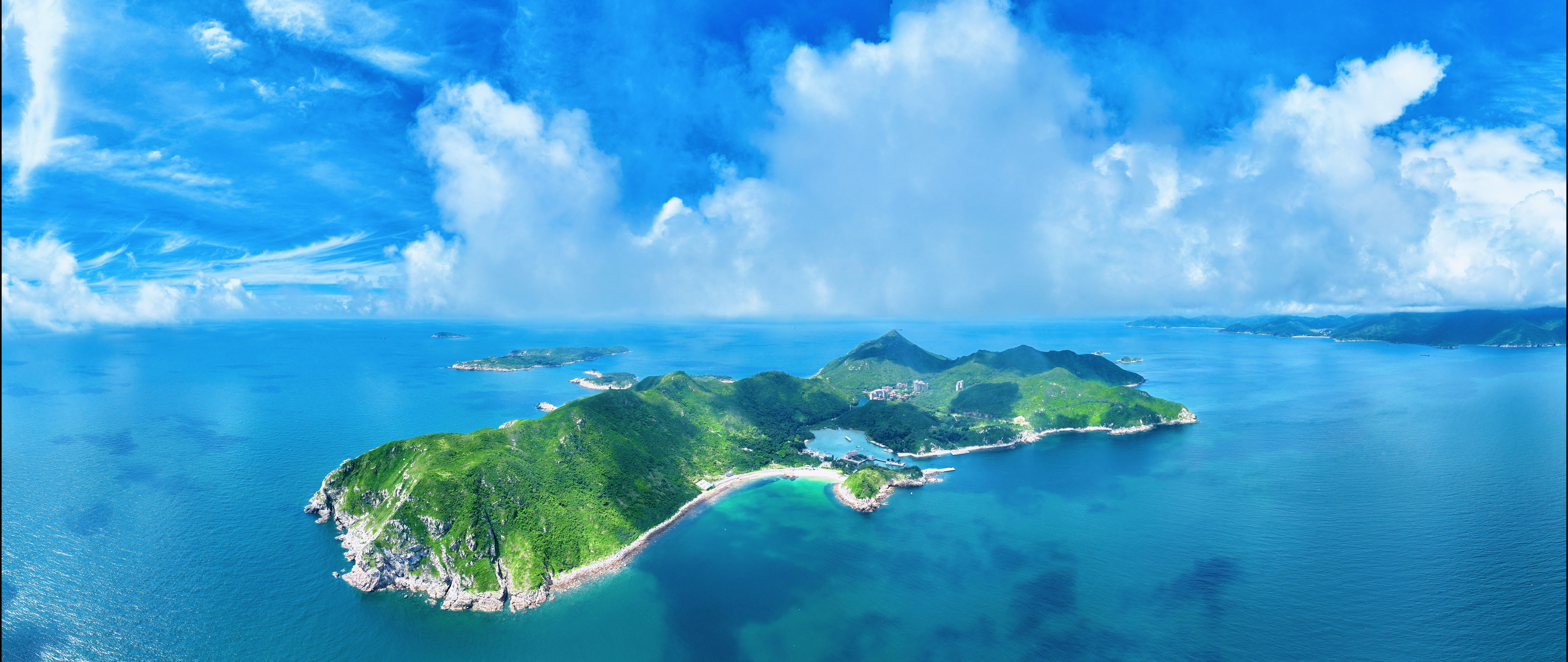 六月的風(fēng),裹挾著咸濕氣息,輕拂過大亞灣海上諸島。澄澈的天空碧藍(lán)如洗,云朵似蓬松棉絮悠然游走。陽光穿透云層,傾灑在波光粼粼的海面,為這片海域鍍上了一層碎金。