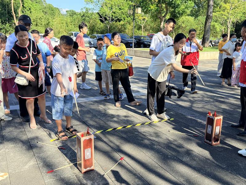 緊接著,互動體驗區(qū)將活動推向高潮。居民們在志愿者指導(dǎo)下,親手制作花燈、剪刻窗花、包制月餅,在動手實踐中感受非遺魅力和中秋韻味。另一邊的趣動全運區(qū),投壺競技、跳繩大闖關(guān)、呼啦圈擂臺賽等傳統(tǒng)與現(xiàn)代結(jié)合的運動項目,讓參與者在挑戰(zhàn)中鍛煉身體,傳遞著全民健身的健康理念。此外,現(xiàn)場還設(shè)置了文明知識有獎問答,寓教于樂,宣傳普及《惠州市文明行為促進(jìn)條例》,提升居民的文明素養(yǎng)。