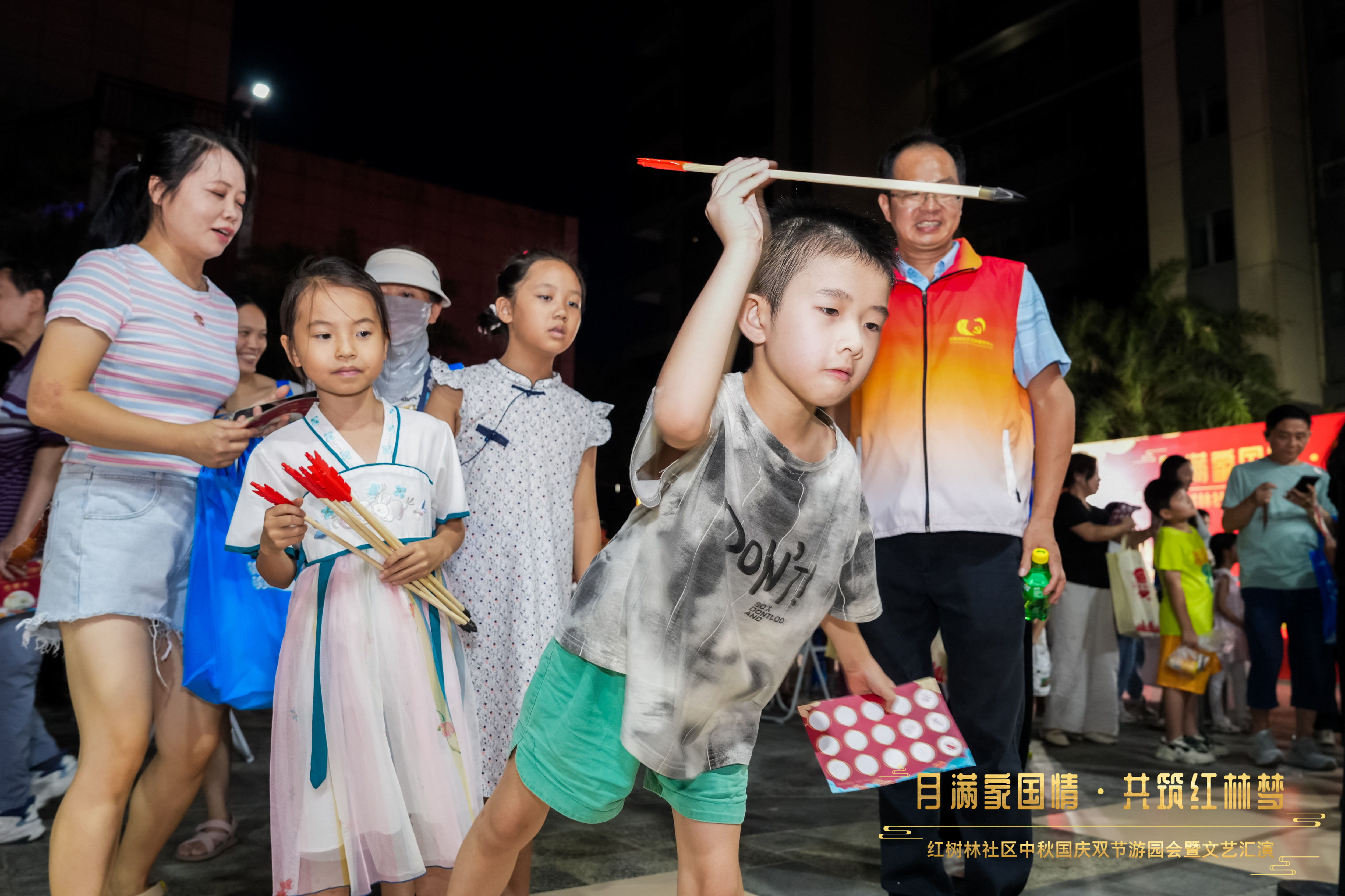 中秋佳節(jié),眾多社區(qū)也紛紛策劃了豐富的活動(dòng),為居民們帶來別樣的節(jié)日體驗(yàn)。10月1日,澳頭紅樹林社區(qū)黨群服務(wù)中心外圍廣場(chǎng)熱鬧非凡,一場(chǎng)以“月滿家國(guó)情·共筑紅林夢(mèng)”為主題的中秋國(guó)慶“雙節(jié)”游園會(huì)暨文藝匯演在此精彩上演。游園會(huì)以“集章兌禮”為線索,設(shè)置多個(gè)主題區(qū)域:“皓月謎光閣”燈謎高懸,眾人競(jìng)猜;“穿云射禮坊”投壺?zé)狒[,喝彩不斷;“巧手繪月區(qū)”親子繪燈,期許團(tuán)圓;“鳴鼓邀月臺(tái)”蒙眼擊鼓,氣氛熱烈;漢服打卡、公共服務(wù)區(qū)各具特色。