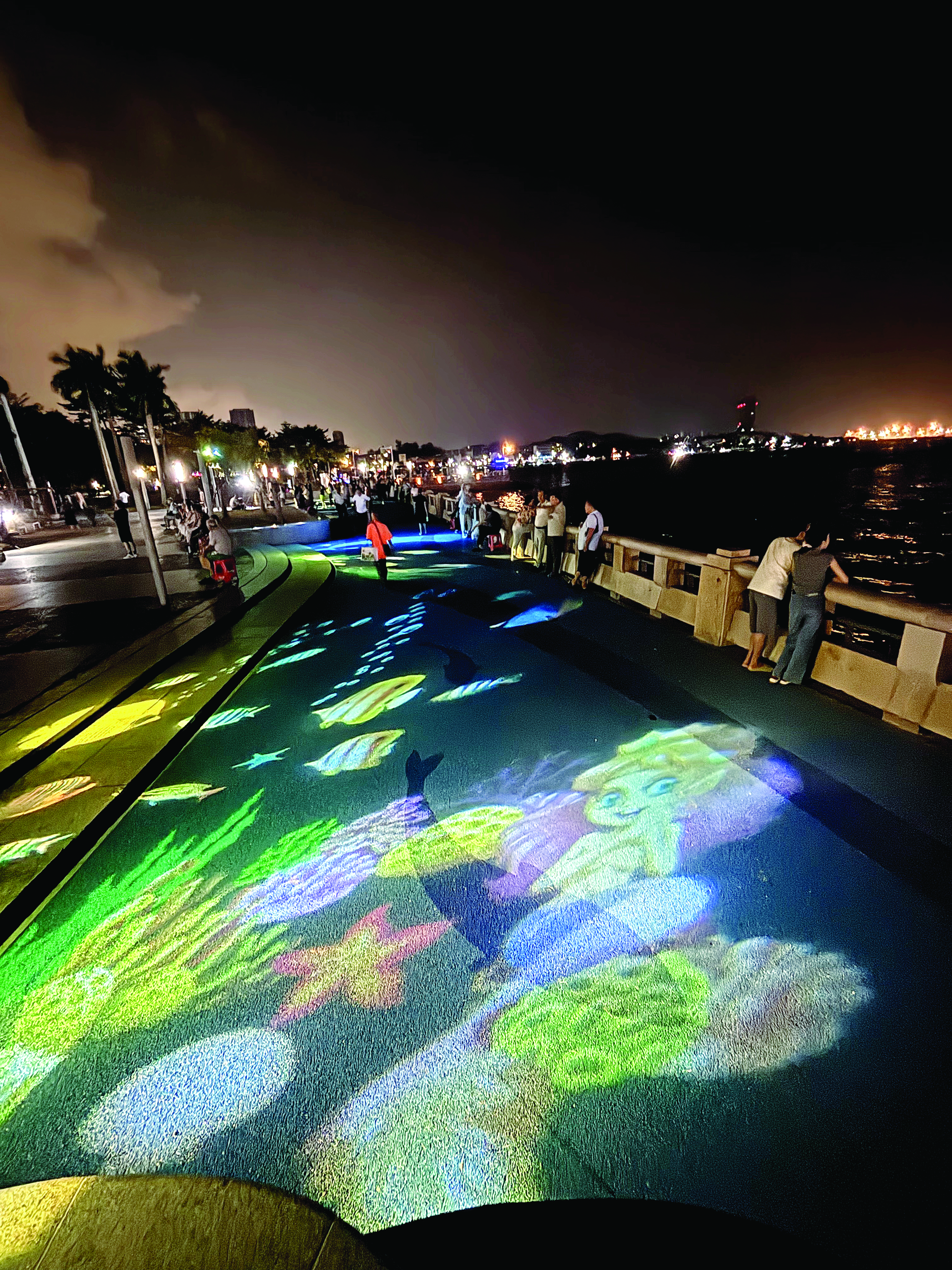 如今,漫步在公園的小徑上,仿佛踏上夢(mèng)幻的海底探險(xiǎn)之旅。嬌俏可愛的美人魚、色彩斑斕的熱帶魚、輕盈飄動(dòng)的水草、波光粼粼的海浪……加上氛圍燈,營造出一個(gè)豐富多彩的海底世界。