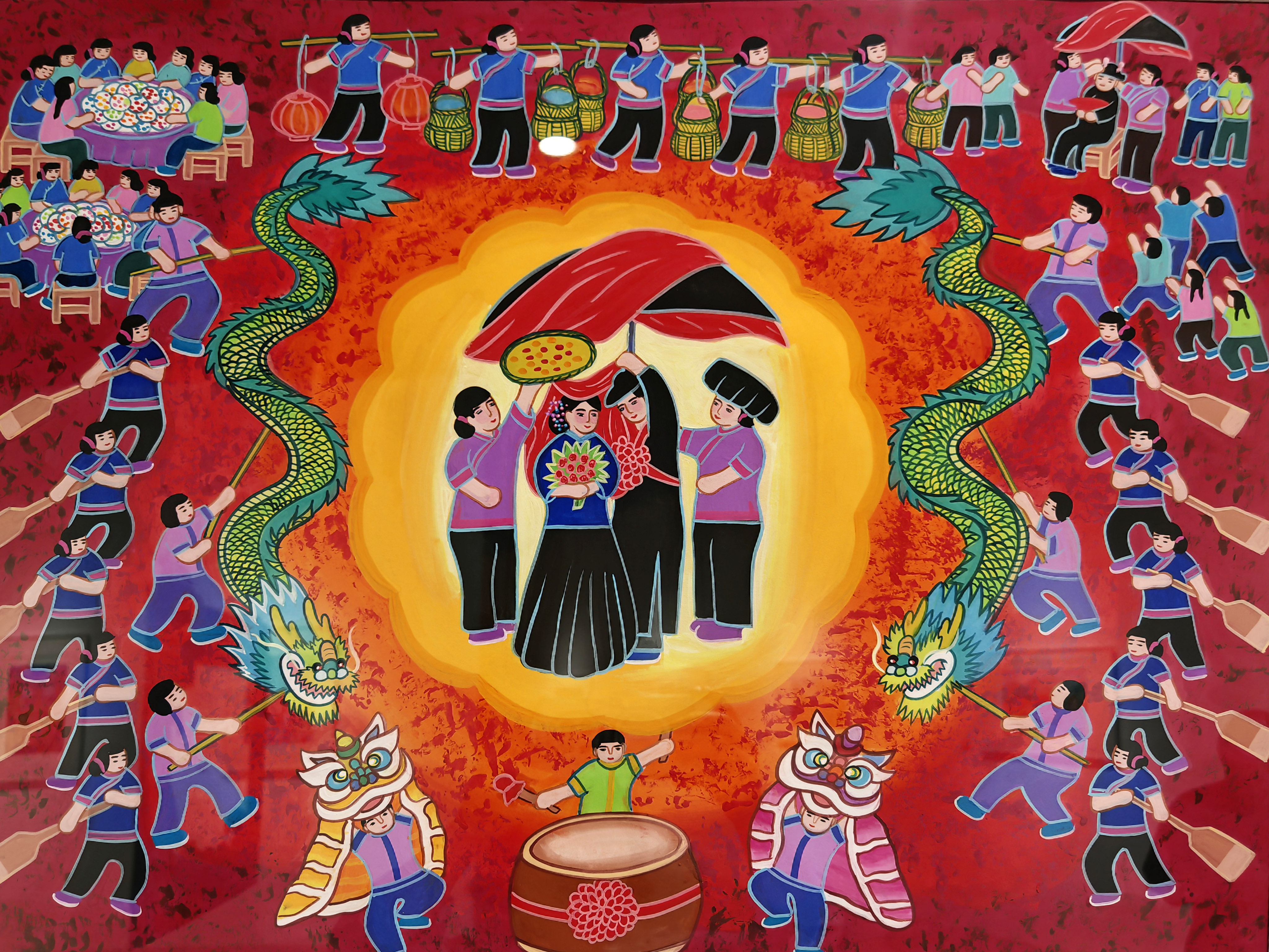 龍門農(nóng)民畫《漁家婚嫁》(翻拍)。