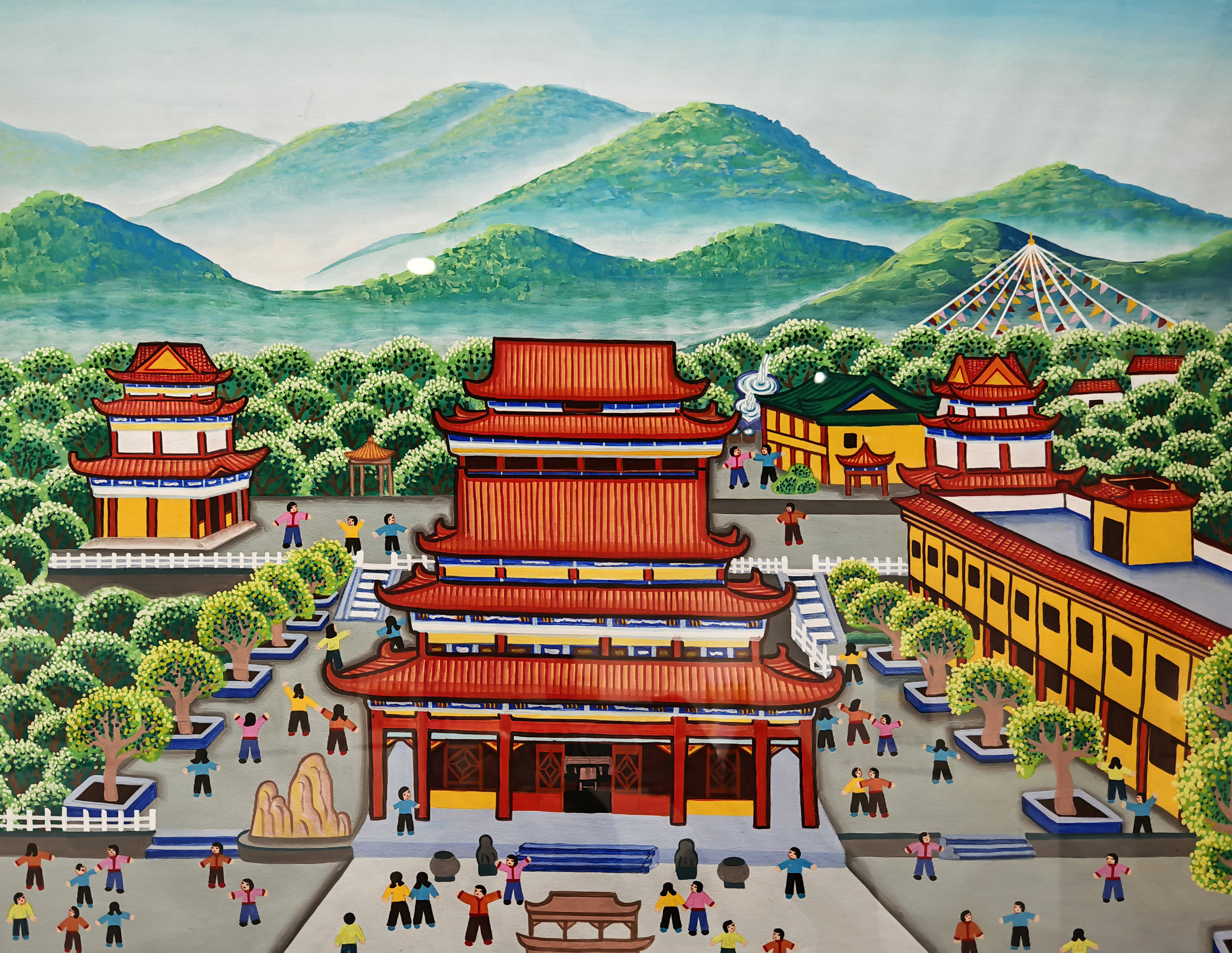 龍門農(nóng)民畫《清泉古寺》(翻拍)。