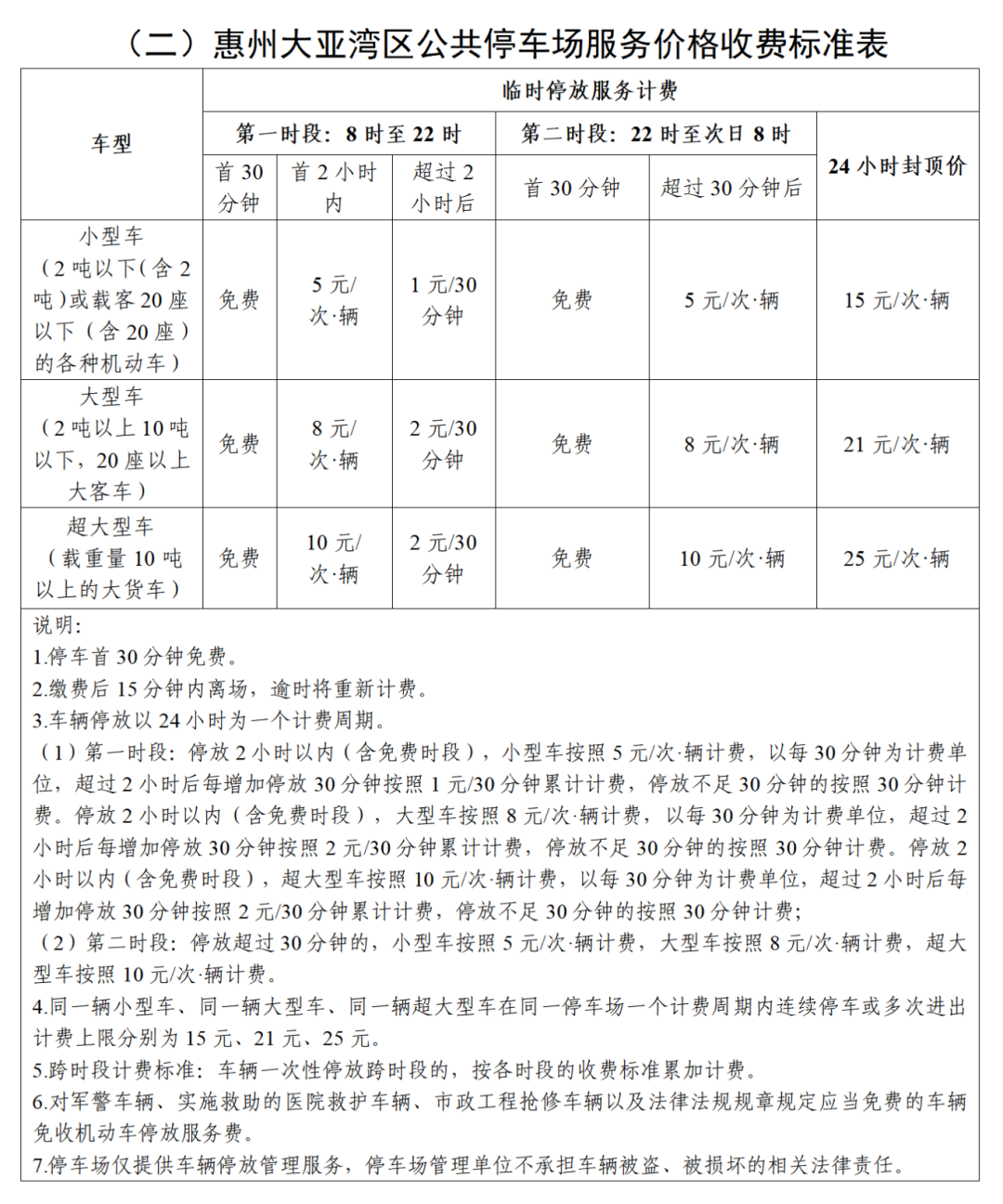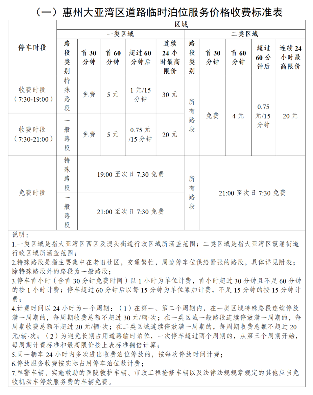 據(jù)了解,大亞灣區(qū)公共泊位停車(chē)收費(fèi)范圍涵蓋全區(qū)三個(gè)街道,即澳頭街道、西區(qū)街道和霞涌街道,包括路內(nèi)公共停車(chē)泊位和可圍蔽管理公共停車(chē)場(chǎng)泊位。道路臨時(shí)泊位實(shí)行動(dòng)態(tài)管理,收費(fèi)路段及道路臨時(shí)泊位設(shè)置以區(qū)公安分局交通管理大隊(duì)和區(qū)城鄉(xiāng)建設(shè)和綜合執(zhí)法局核定為準(zhǔn)。定價(jià)方式為政府指導(dǎo)價(jià);收費(fèi)依據(jù)為11月5日批復(fù)的《關(guān)于惠州大亞灣經(jīng)濟(jì)技術(shù)開(kāi)發(fā)區(qū)高質(zhì)量發(fā)展公共基礎(chǔ)設(shè)施項(xiàng)目(智慧停車(chē))涉及道路臨時(shí)泊位及公共停車(chē)場(chǎng)收費(fèi)事項(xiàng)的批復(fù)》(惠灣經(jīng)統(tǒng)聯(lián)字〔2025〕15號(hào));經(jīng)營(yíng)主體為惠州大亞灣區(qū)智慧城市建設(shè)投資有限公司。