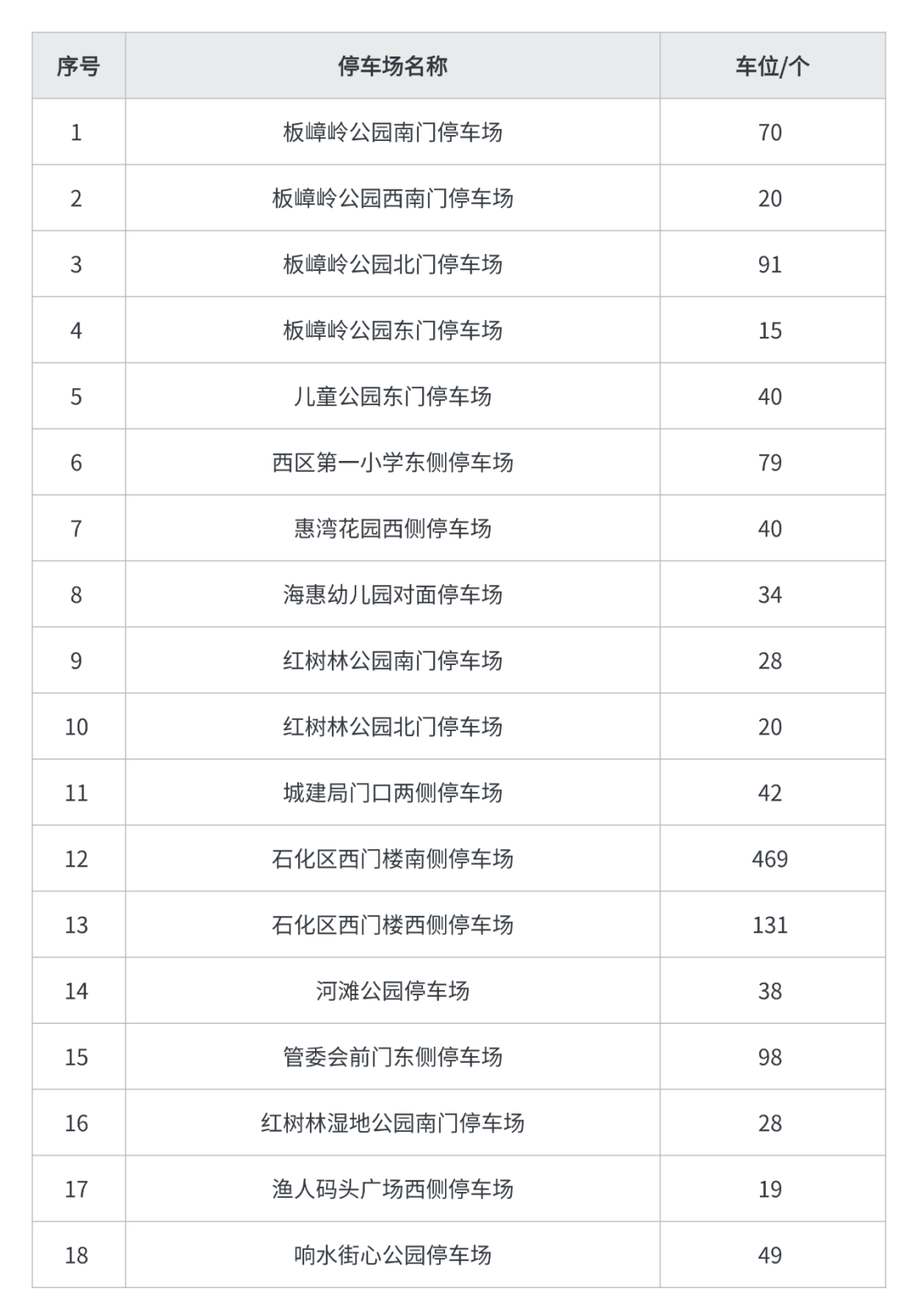 收費(fèi)范圍包含以下停車(chē)場(chǎng):