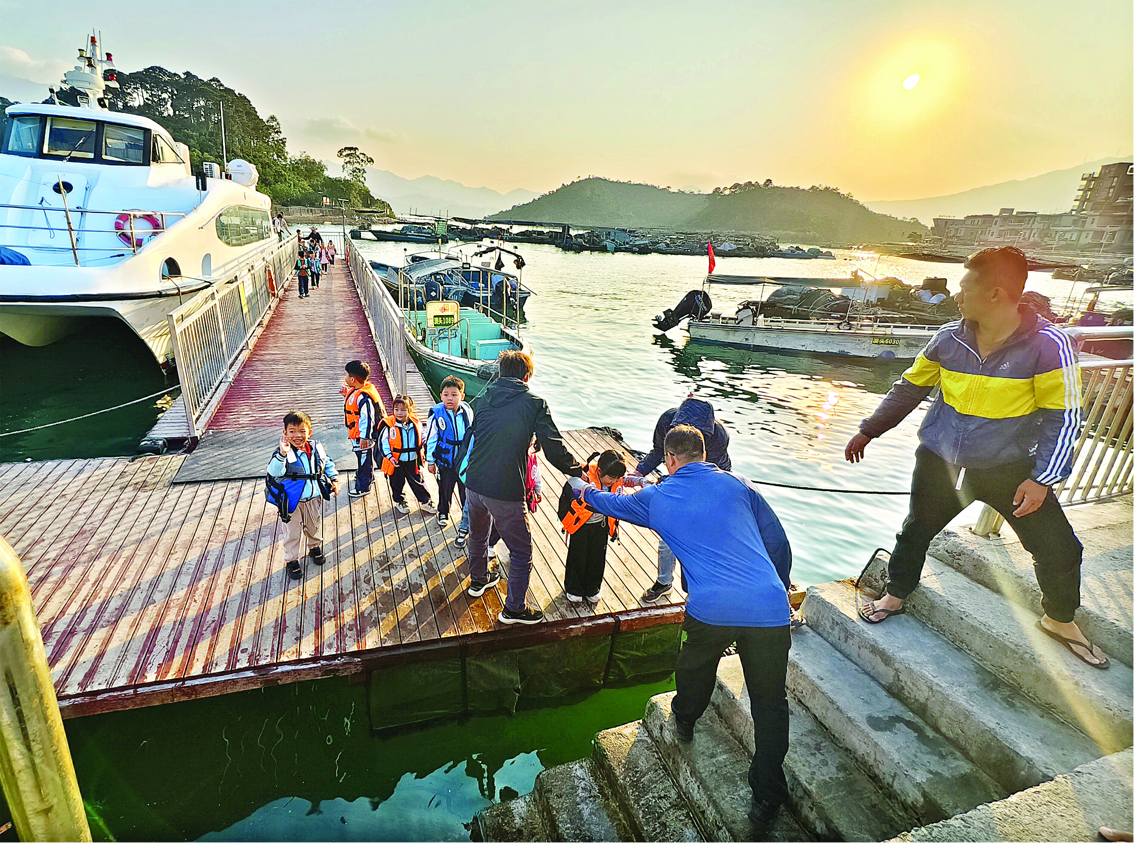 東升島的孩子們坐上安全船渡。圖片由受訪單位提供