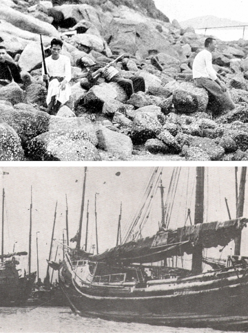 大亞灣海盜的駐地飯羅崗(今惠東縣稔山鎮(zhèn)范和村),手持槍械的海盜從海上巡邏歸來,攝于1931年。
