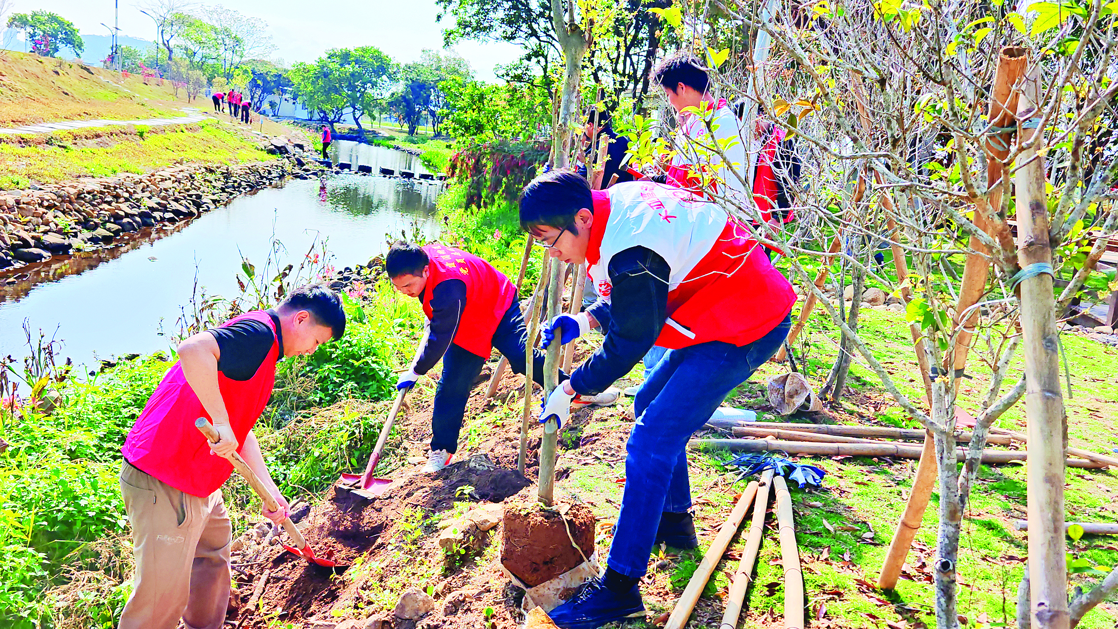 春風(fēng)送暖,萬物勃發(fā)。3月11日,大亞灣霞涌街道鄉(xiāng)村綠化主題植樹活動在上角村“千畝方”山海稻香田園項(xiàng)目綠美熱科農(nóng)場青龍河畔舉行。大家三五成群、分工協(xié)作,現(xiàn)場一片熱火朝天的勞動景象。歡聲笑語間,一株株小葉紫薇迎風(fēng)挺立,為河畔增添了勃勃生機(jī)。